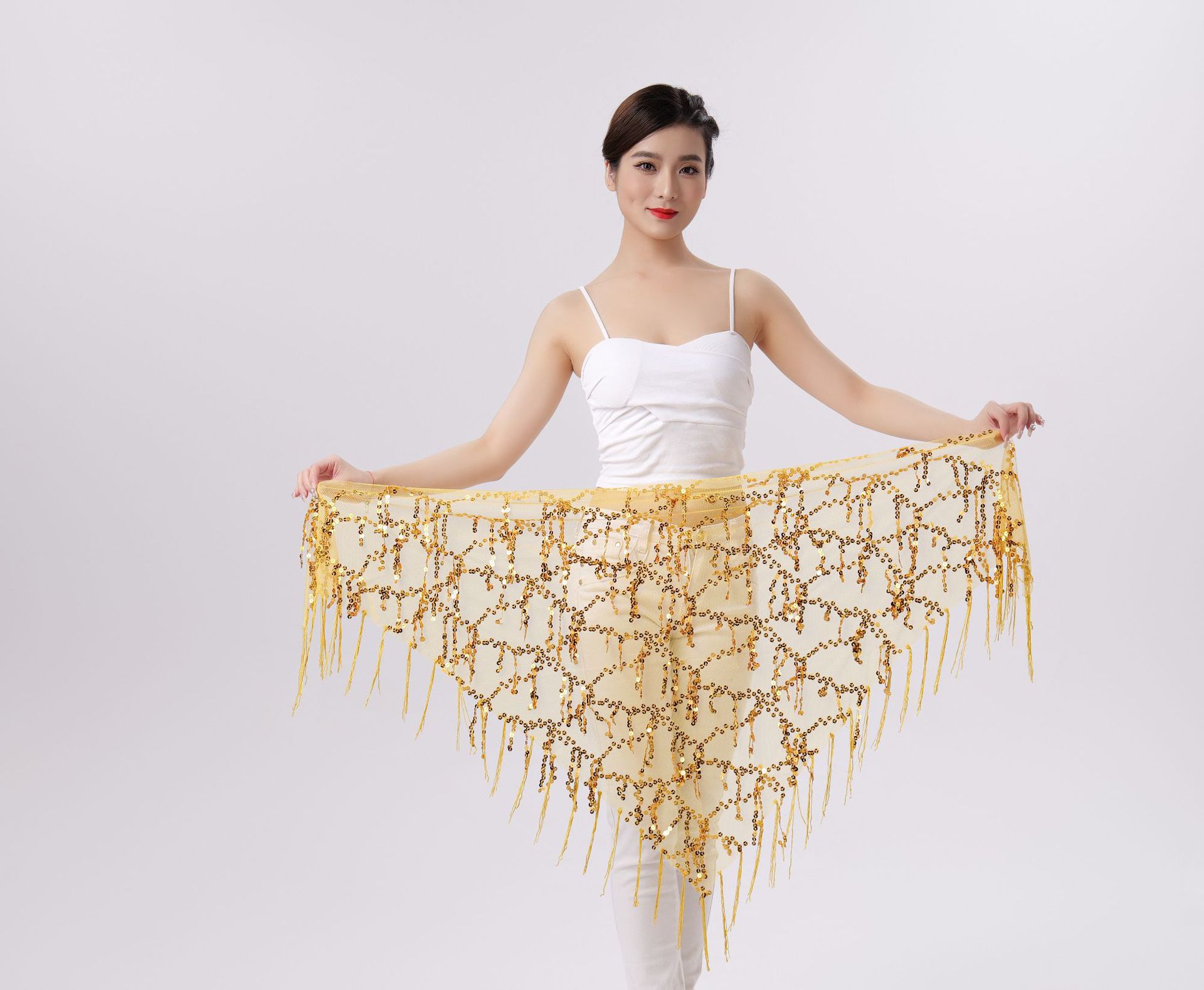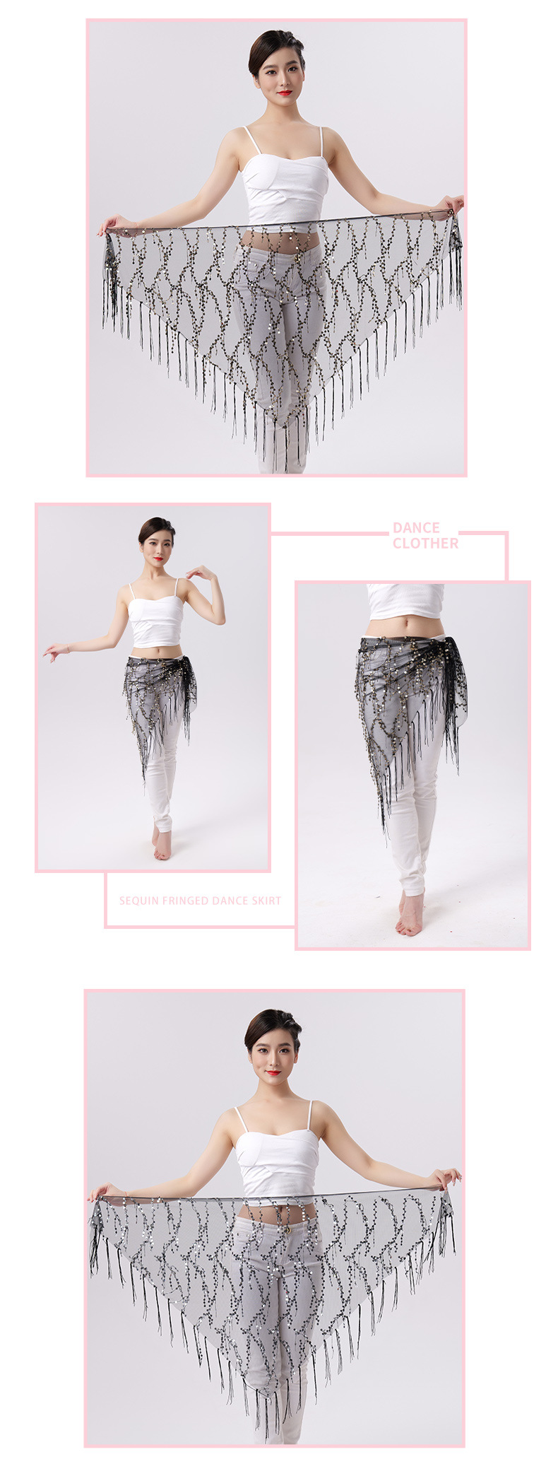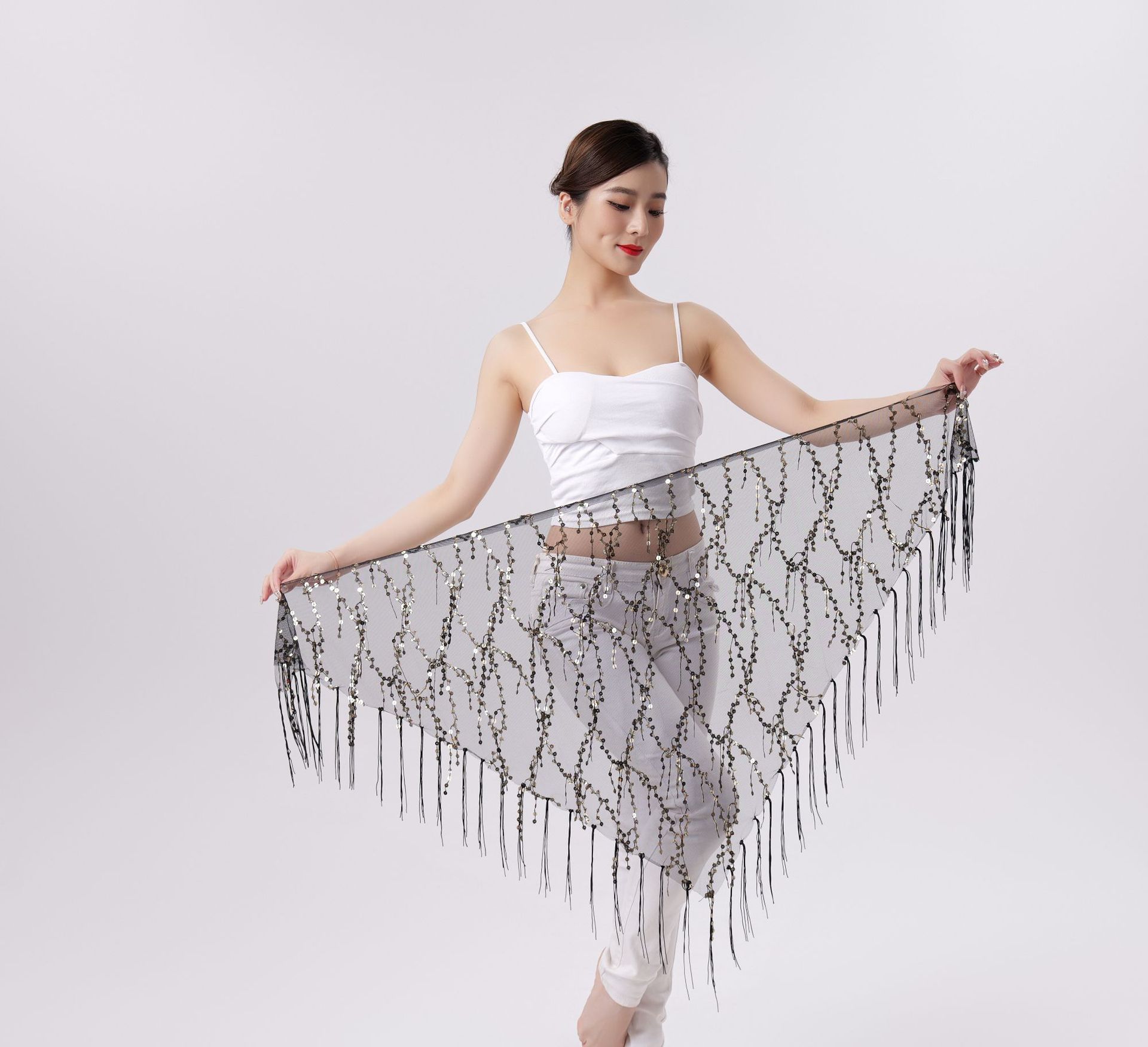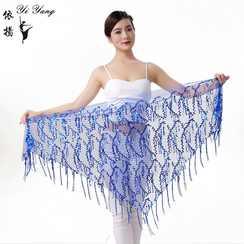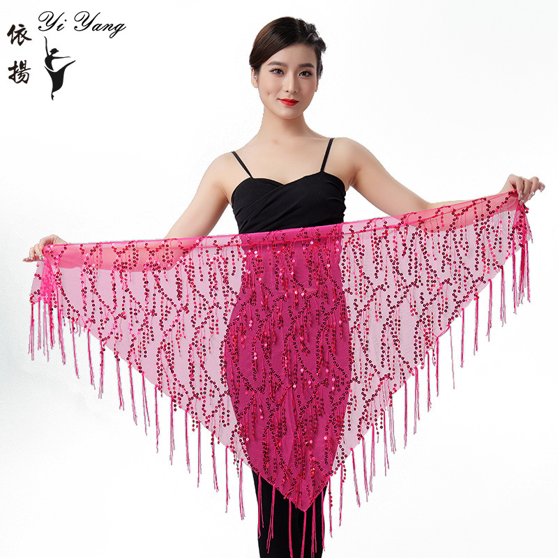 Внешняя торговля Танец живота Блестки Кисточка Треугольное полотенце Представление Полотенце для бедер Практика Талия Цепь Полотенце для талии Индийская танцевальная одежда