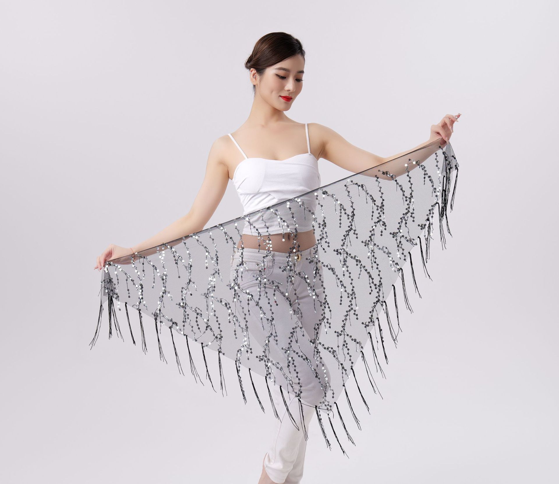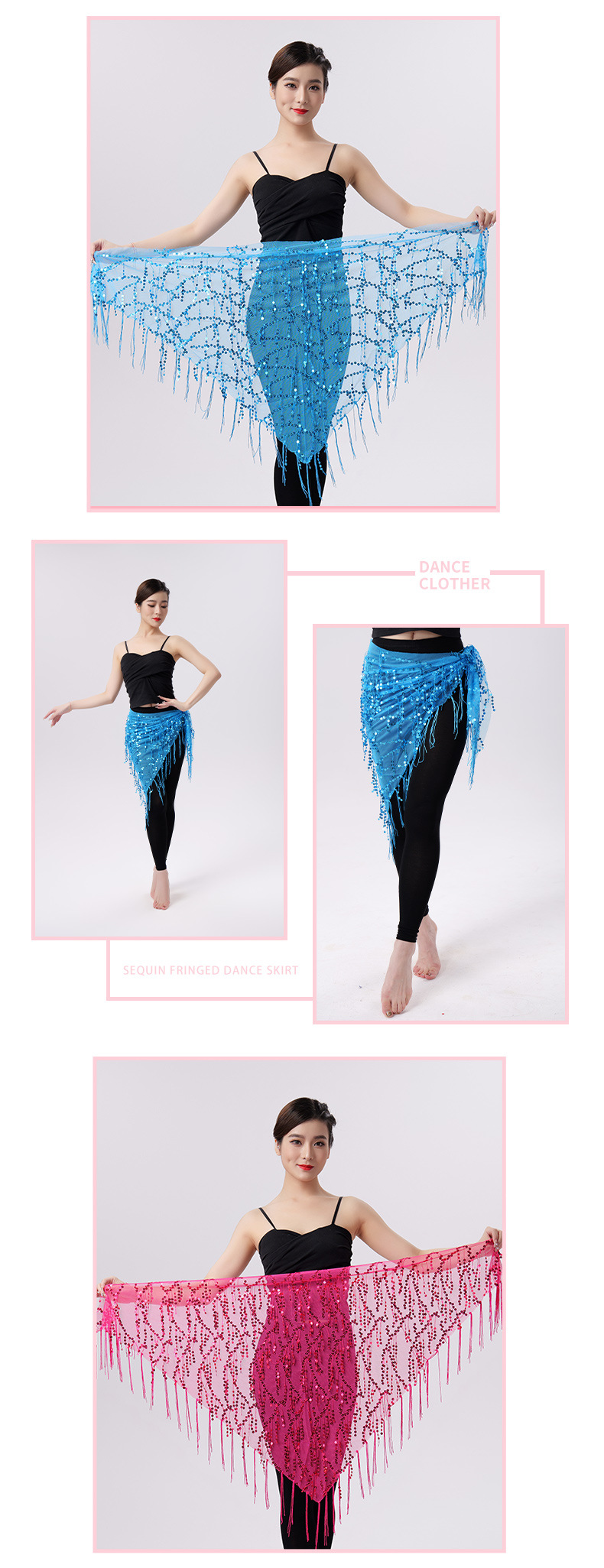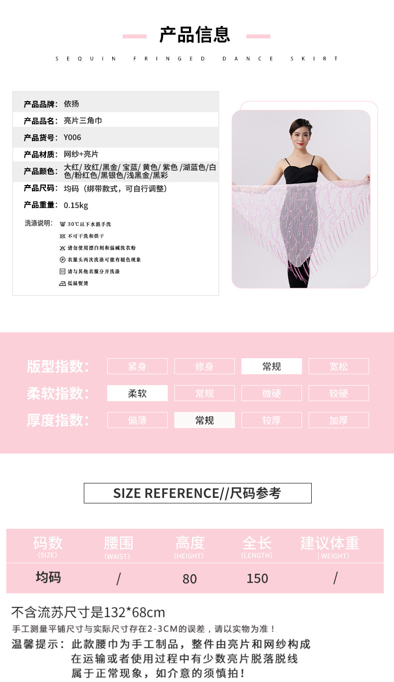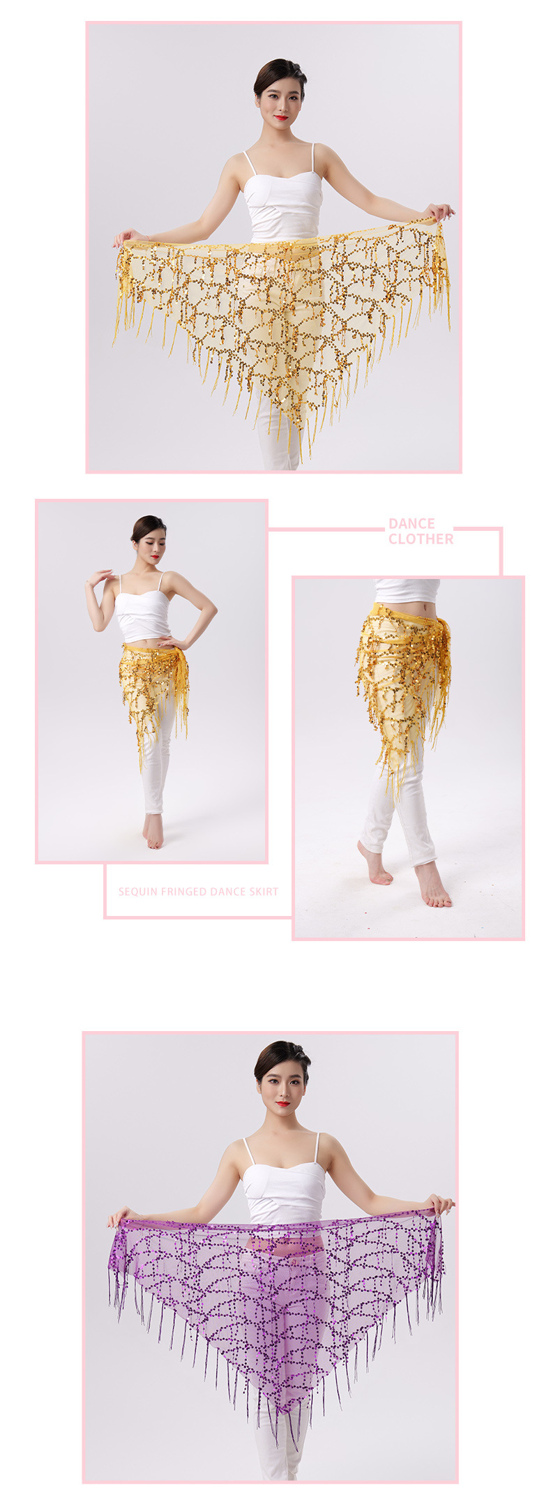Внешняя торговля Танец живота Блестки Кисточка Треугольное полотенце Представление Полотенце для бедер Практика Талия Цепь Полотенце для талии Индийская танцевальная одежда