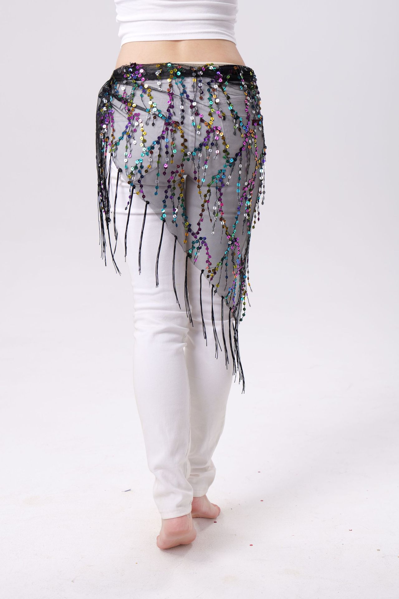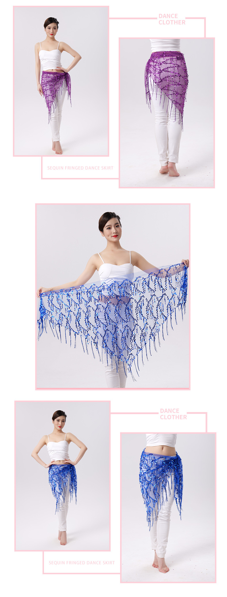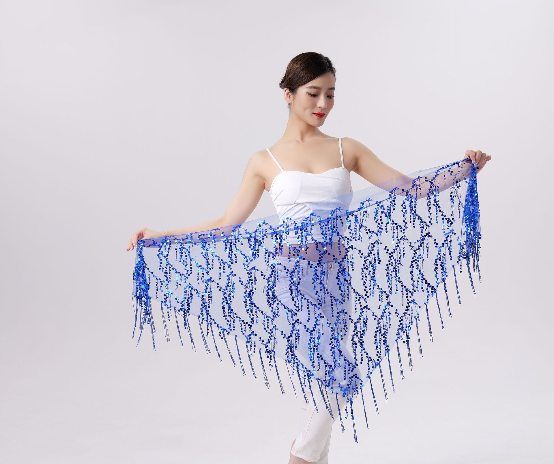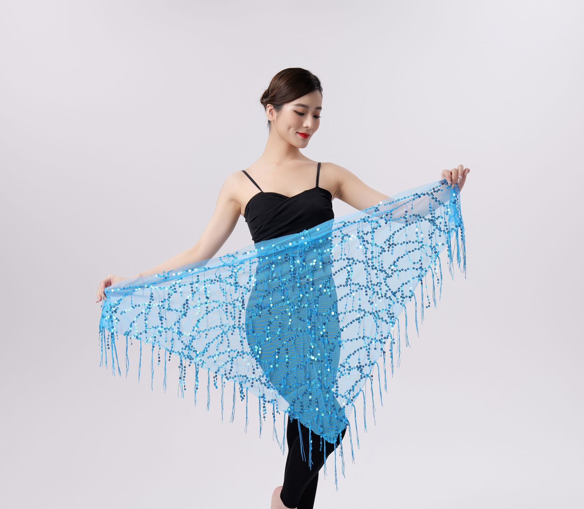 Внешняя торговля Танец живота Блестки Кисточка Треугольное полотенце Представление Полотенце для бедер Практика Талия Цепь Полотенце для талии Индийская танцевальная одежда