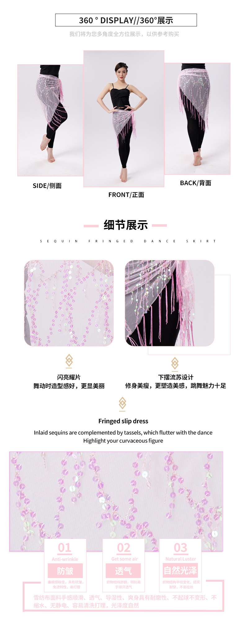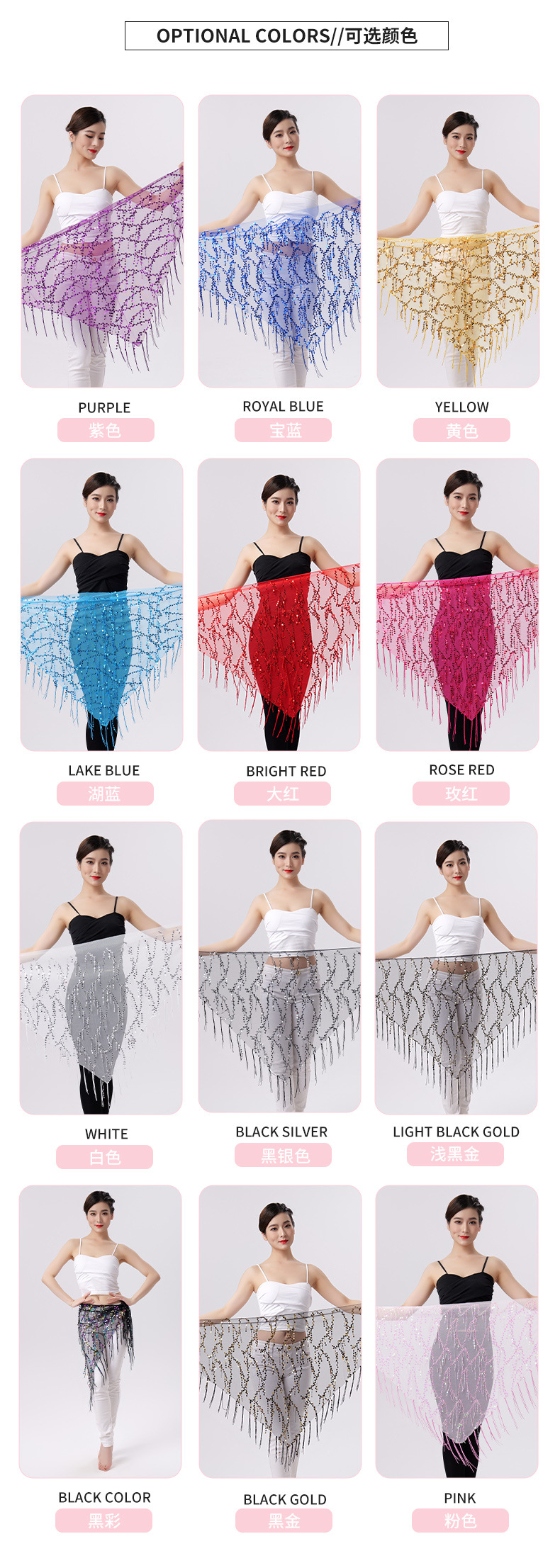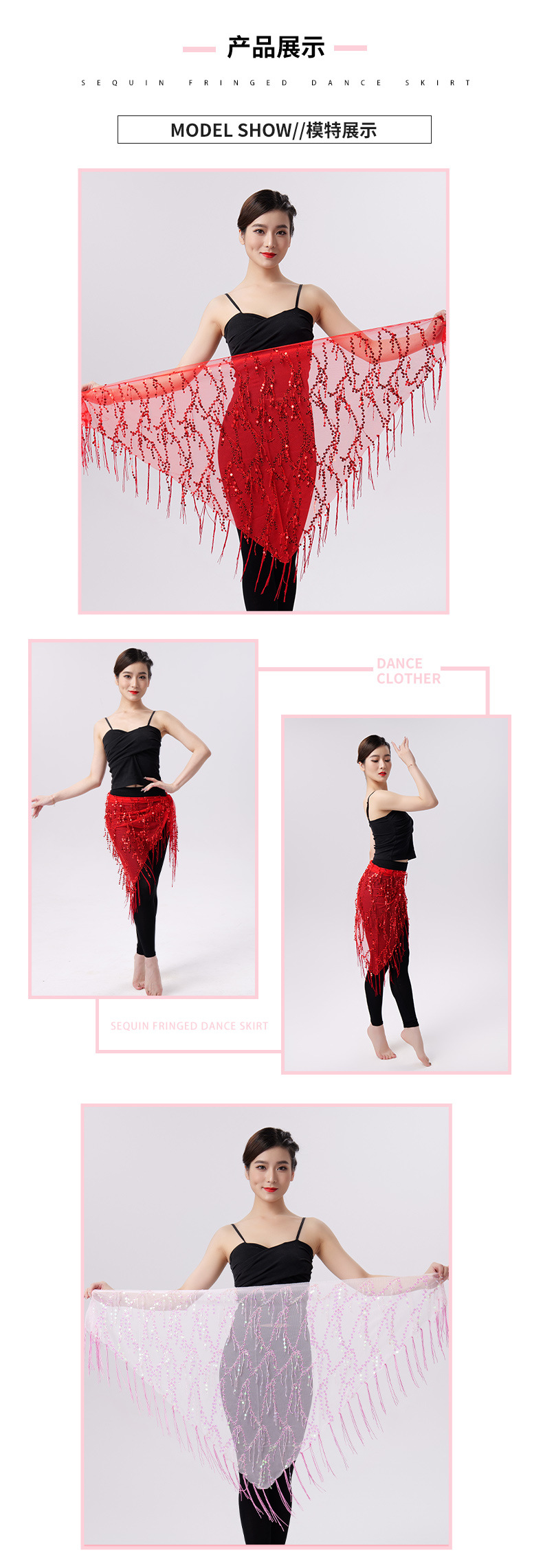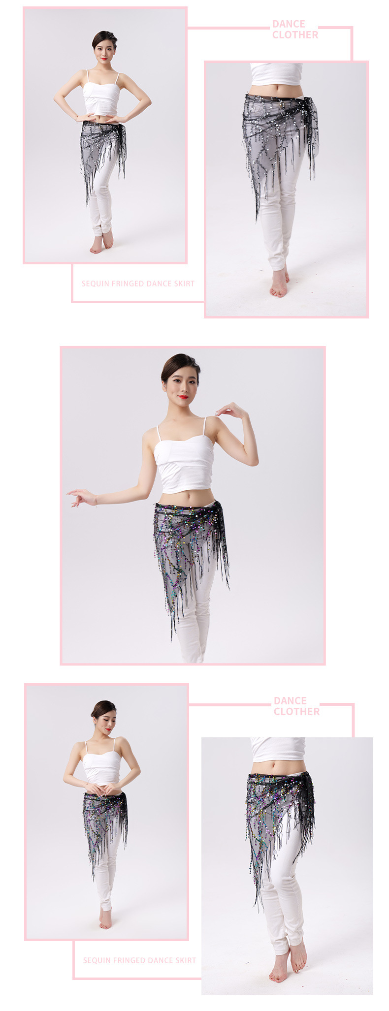 Внешняя торговля Танец живота Блестки Кисточка Треугольное полотенце Представление Полотенце для бедер Практика Талия Цепь Полотенце для талии Индийская танцевальная одежда