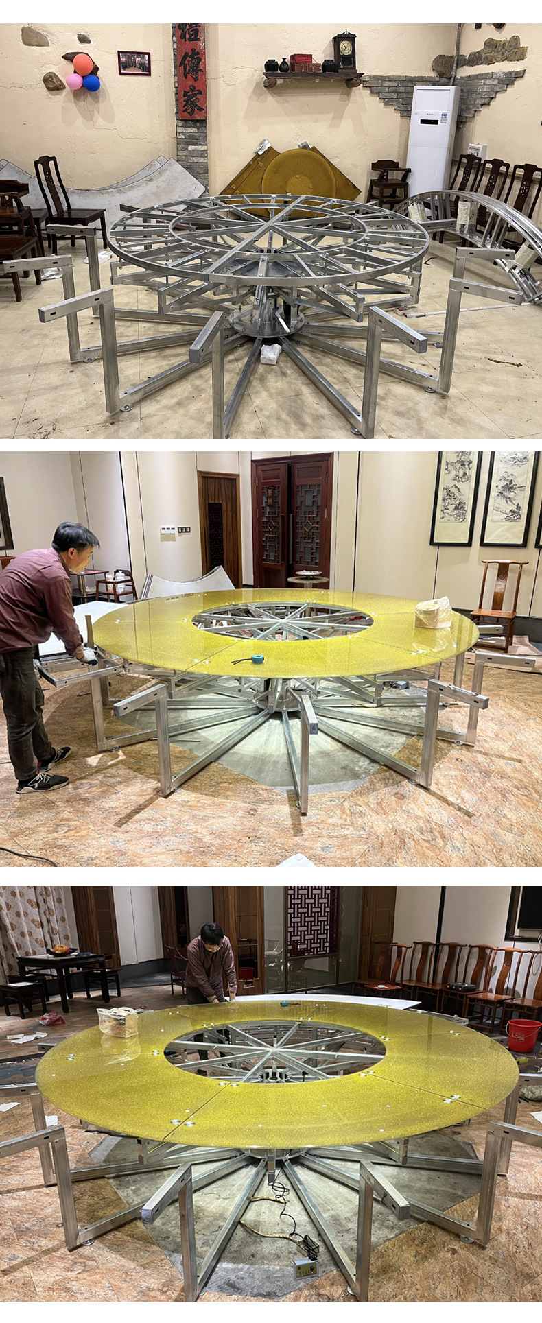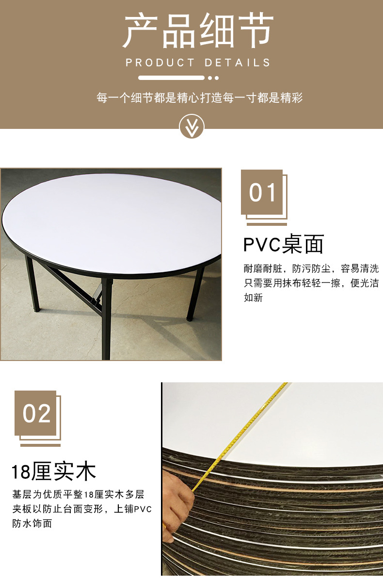 Большой круглый складной обеденный стол для 10 человек, для частных комнат, свадебных банкетов, гостиничный круглый обеденный стол из ПВХ.