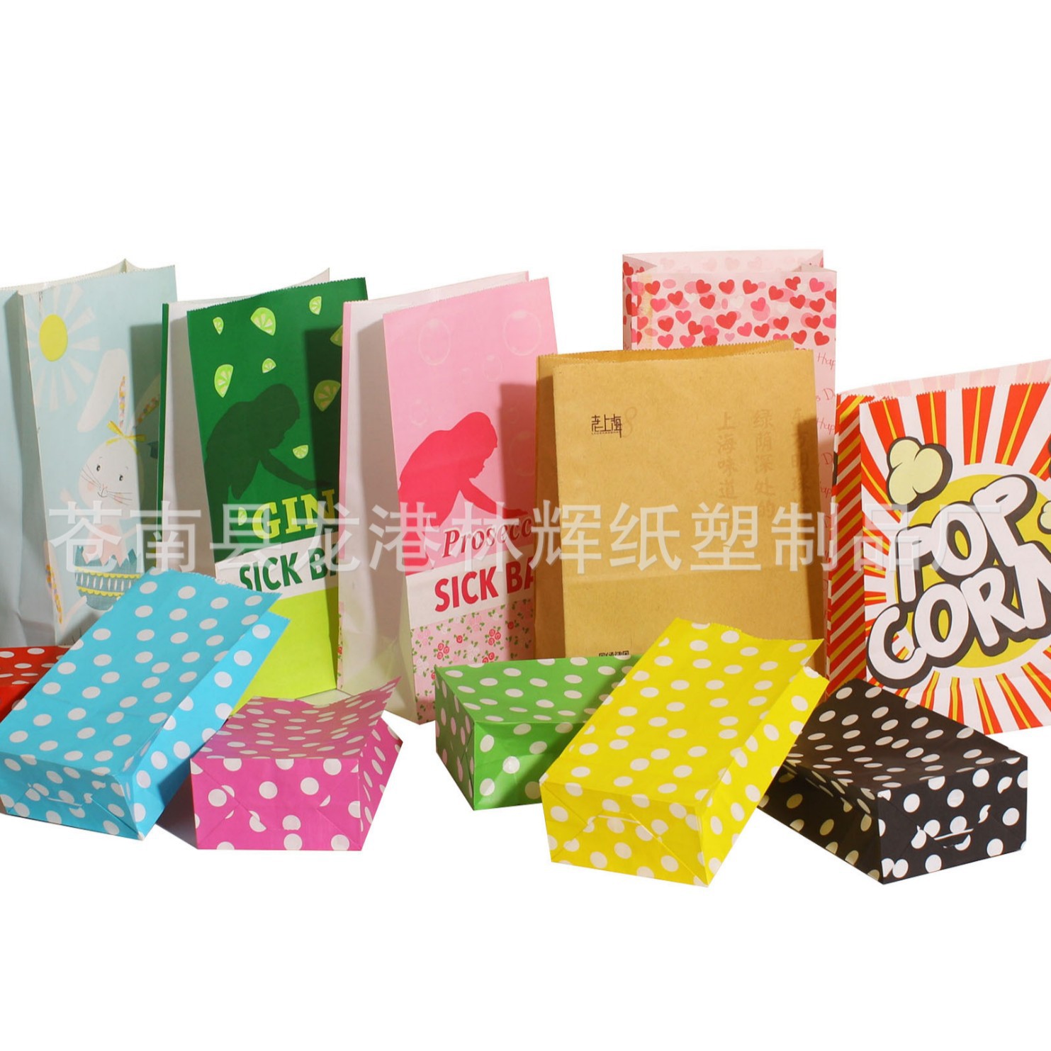 Шестицветная печатная крафт-квадратная Нижняя бумажная сумка Праздничная конфетная бумага упаковочная сумка для тостов хлеб упаковочная сумка