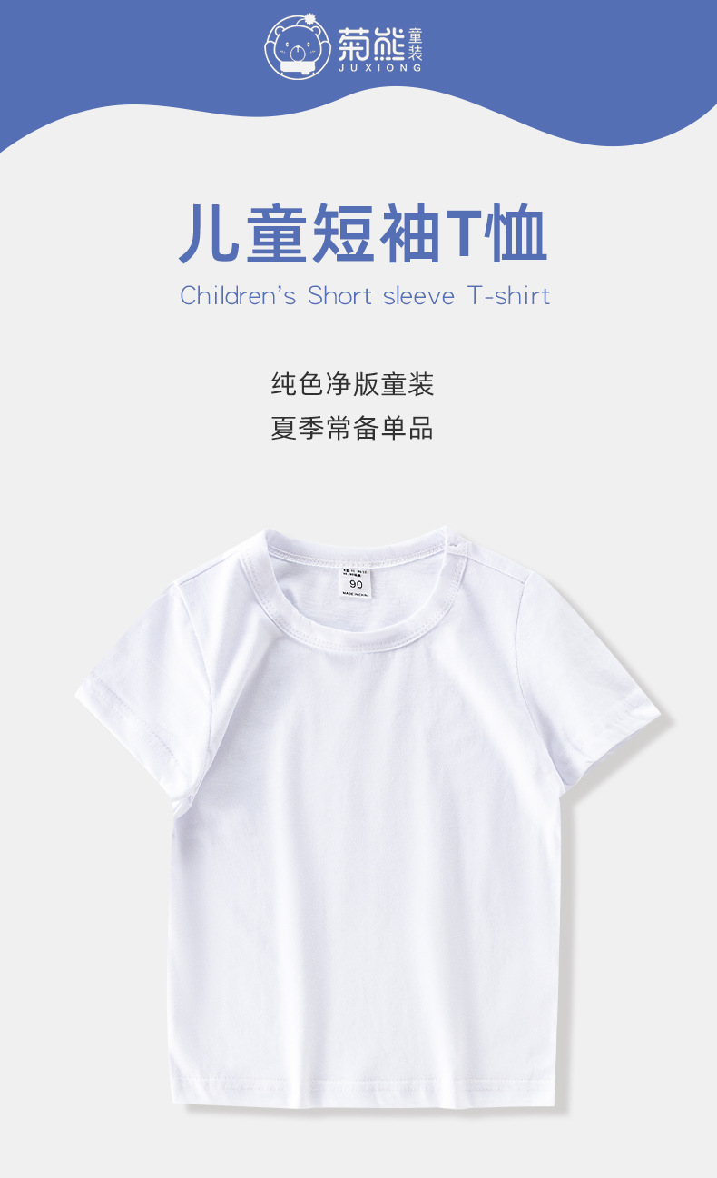 Детская футболка с коротким рукавом, базовая модель из чистого хлопка, тонкий летний стиль, однотонная, без рисунка, оптовая продажа детской одежды для экспорта.