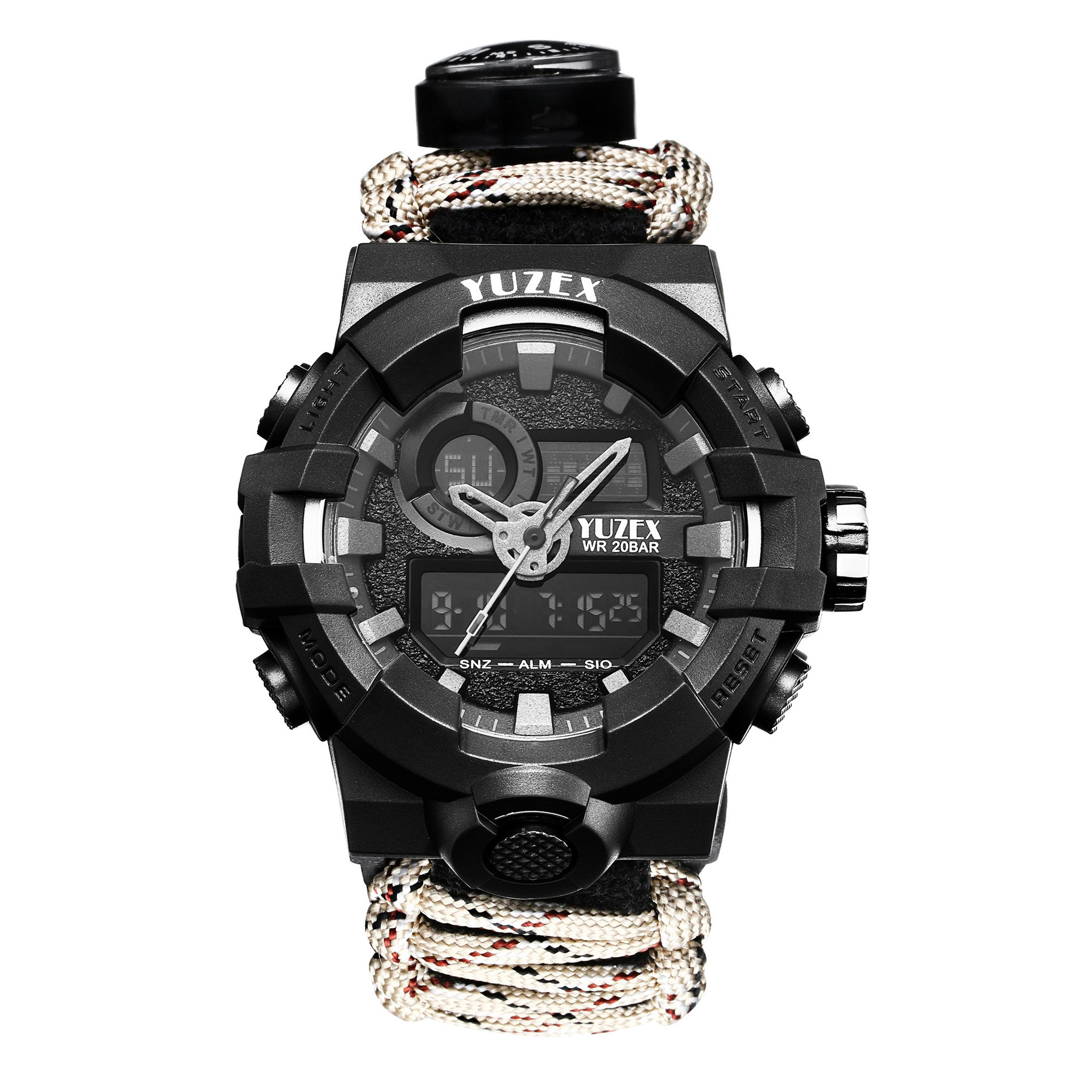 【品名】:七芯伞绳编织热销夜光防水户外手表便携精致温度计指南针伞绳手表6