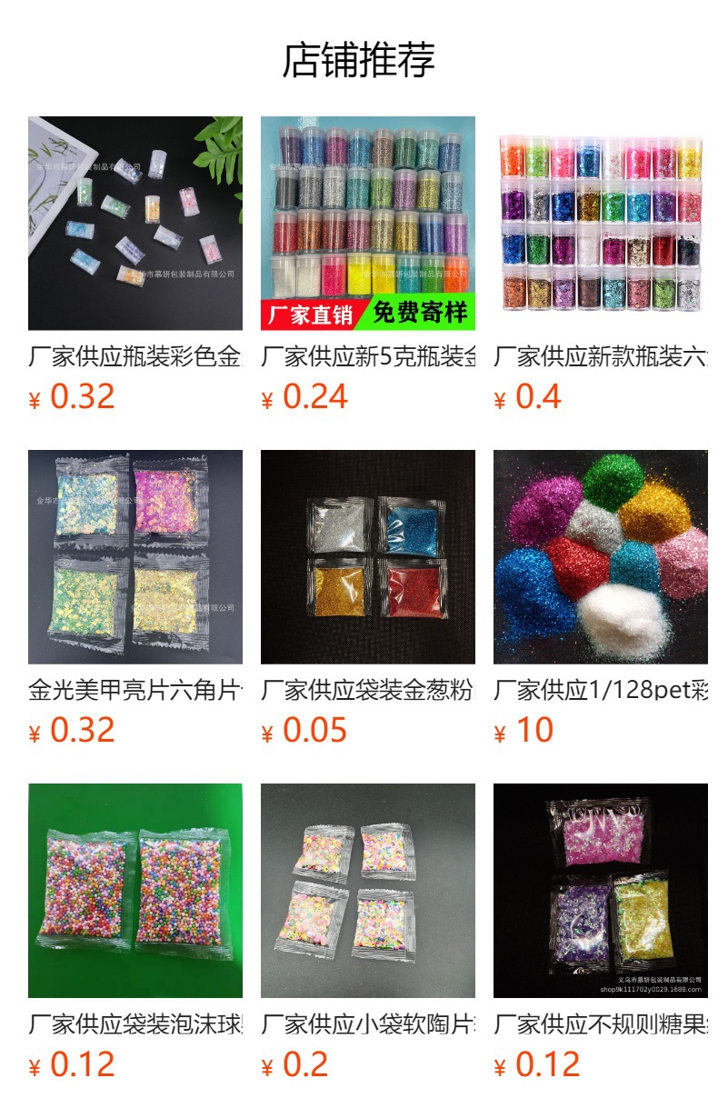 需要指定颜色麻烦联系客服备注颜色哦,各种瓶子装金葱粉和机器封口小袋包装定做具体价格咨询客服量大价格优惠,我们是厂家自己生产包装的金葱粉一手货源,你想要的克数和包装方式我们都可以做,详情请联系客服