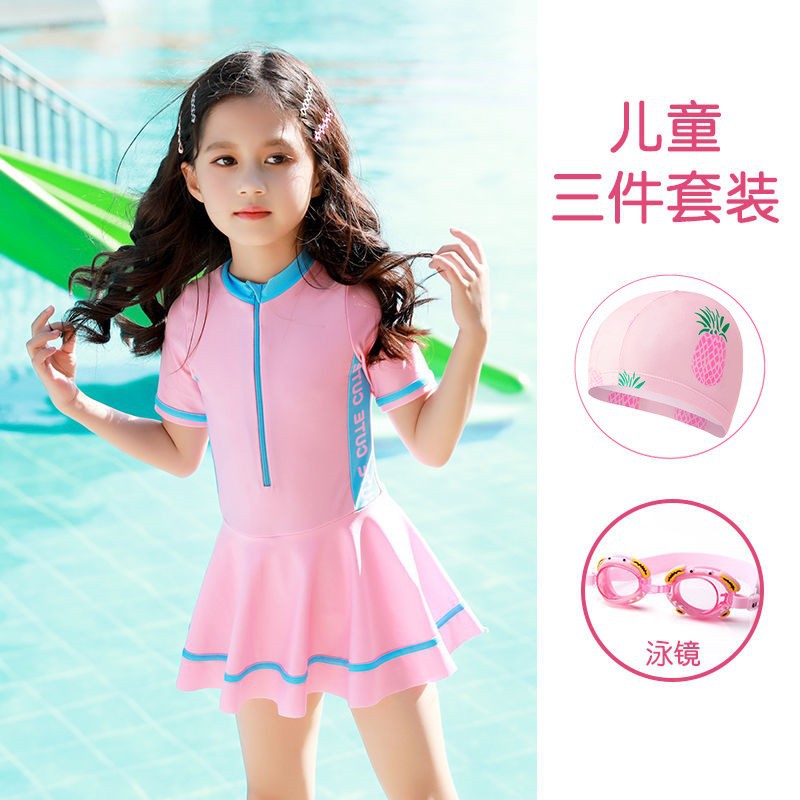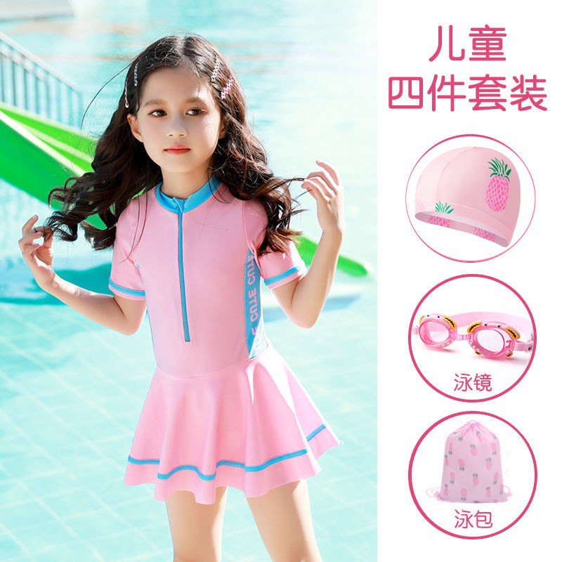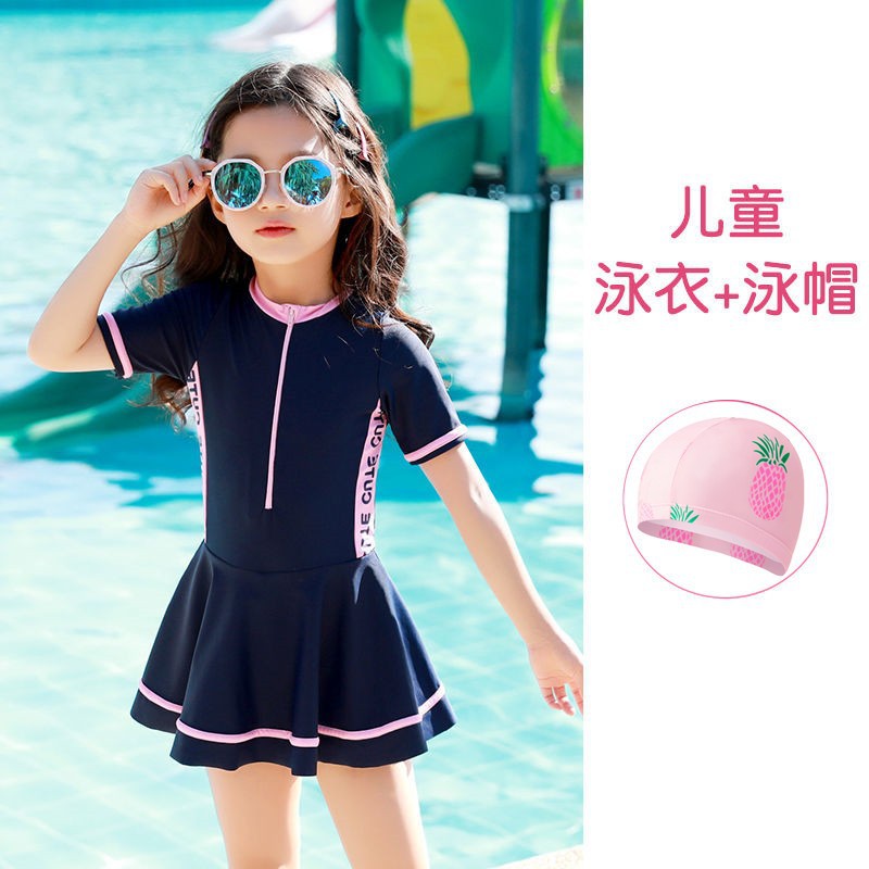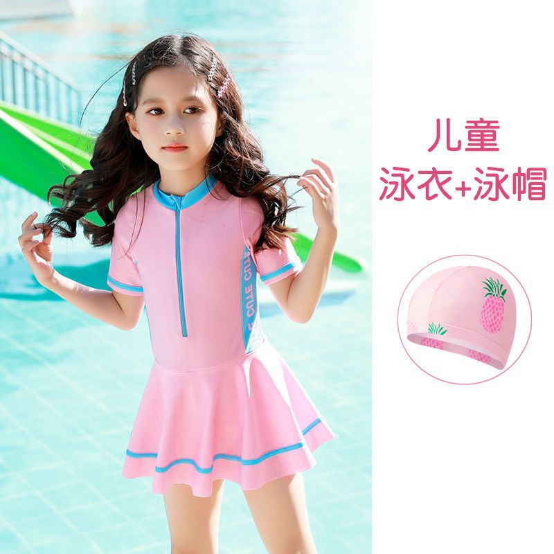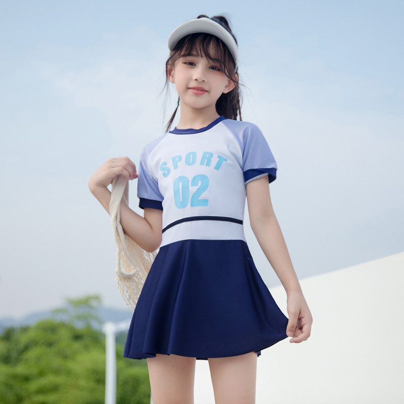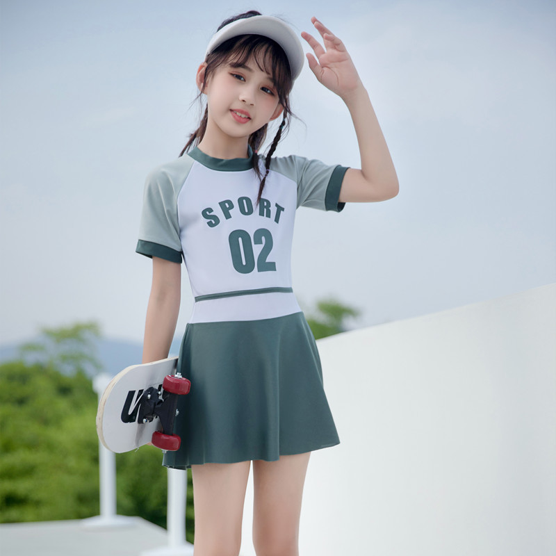 Новая подходящая по цвету Спортивная повседневная цельная юбка для девочек, консервативный купальный костюм для маленьких, средних и больших детей, горячая весна для женщин