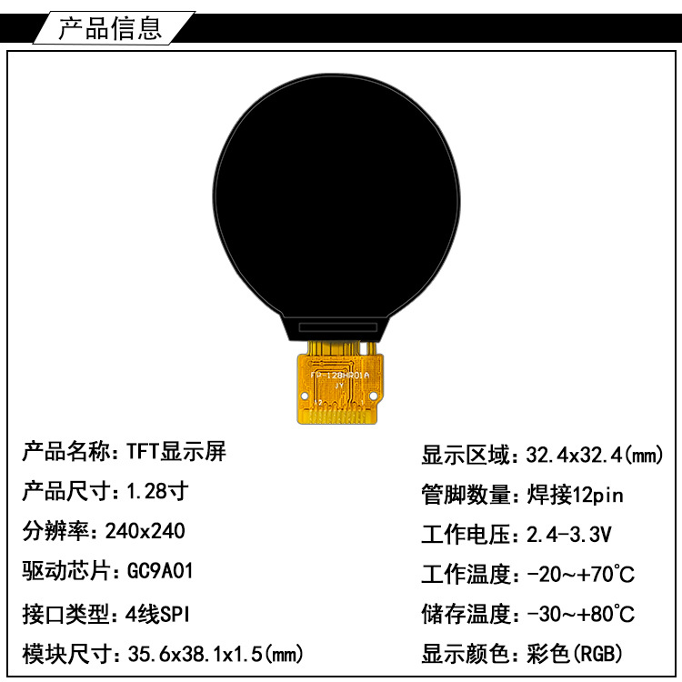 1,28-дюймовый цветной круглый экран с разрешением 240*240 Сварка 12PIN Драйвер интерфейса SPI GC9A01