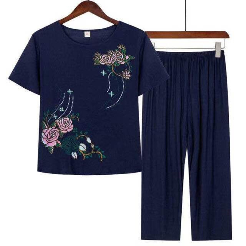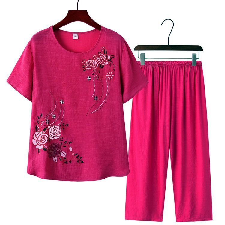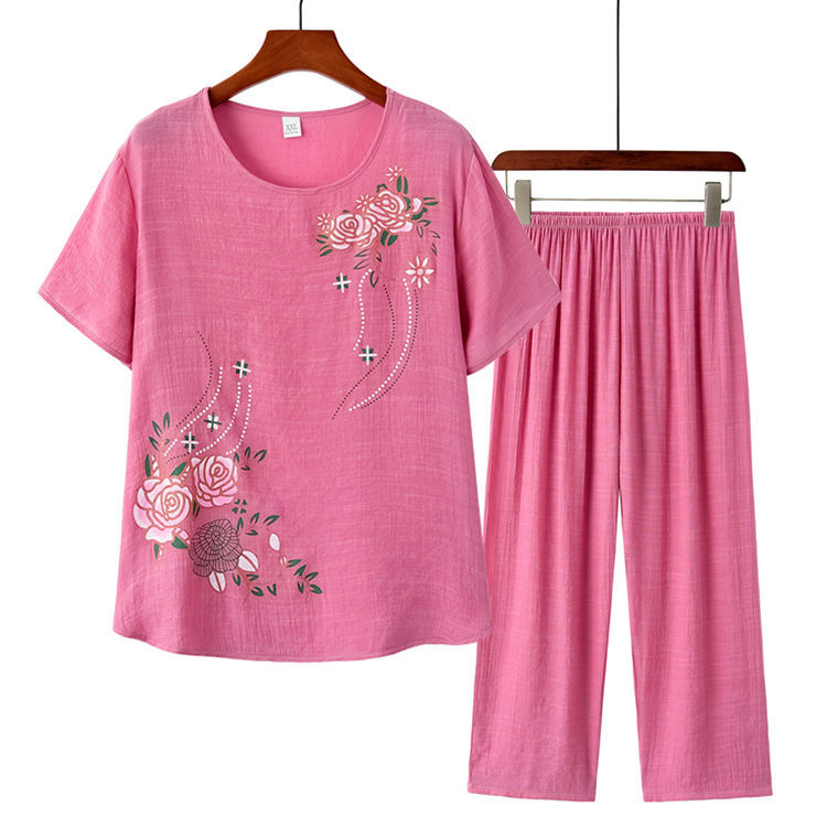 Женская футболка среднего и пожилого возраста, летний костюм-двойка из искусственного хлопка и льна, костюм для мамы, теща, 60 лет, 70 лет, бабушка, футболка, брюки