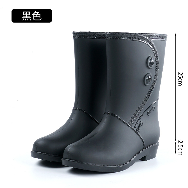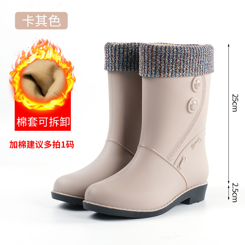 Женские резиновые сапоги на флисовой подкладке, модная верхняя обувь для воды со средней трубкой, глянцевая обувь, водные сапоги, резиновая обувь, непромокаемые Нескользящие женские резиновые сапоги для взрослых