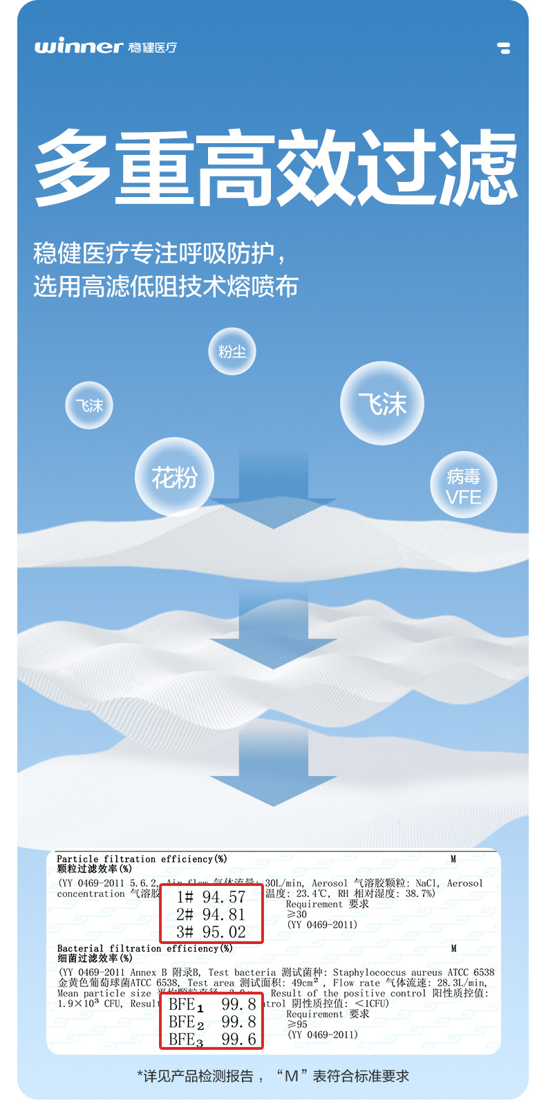 Нетканый материал + фильтрующий слой + хлопковая подкладка.