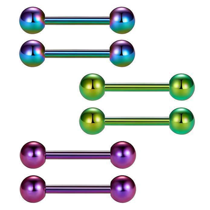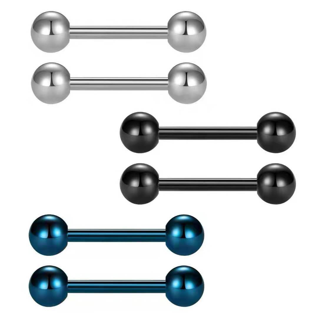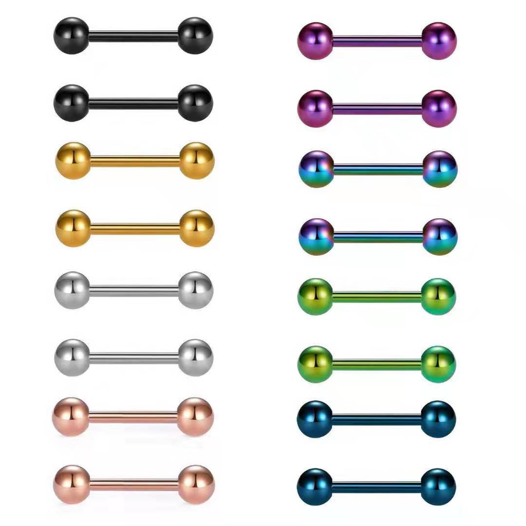 Оптовые серьги-гвоздики из нержавеющей стали для пирсинга, прямые, с шариком, разноцветные, для мужчин и женщин