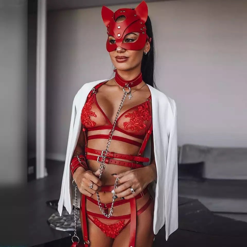 Костюм на кожаном ремешке костюмный облегающий без маски и воротника