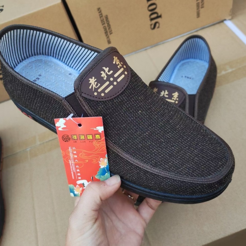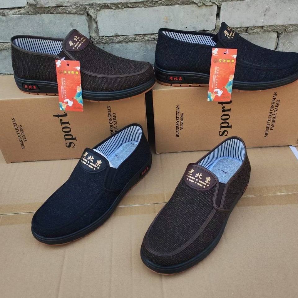 Мужские повседневные туфли для пожилых людей, весенне-осенний стиль, нескользящая подошва, классические тканевые туфли в стиле старого Пекина, высококачественная плоская подошва.