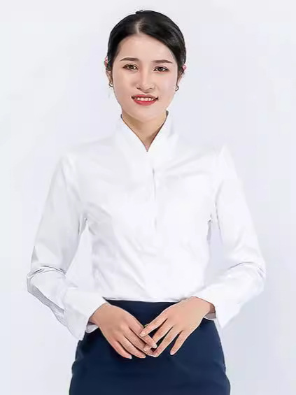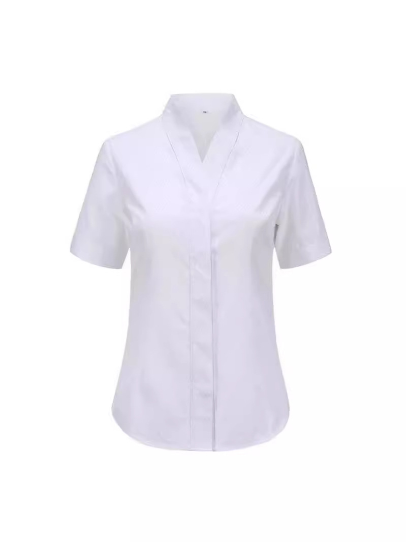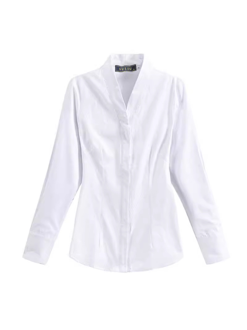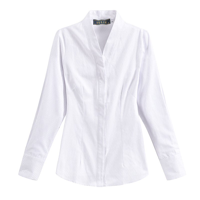 Белая рубашка с V-образным вырезом, приталенная, для собеседований на должность бортпроводника, профессиональная женская рубашка для собеседований, рабочая униформа, элегантный новый китайский стиль.