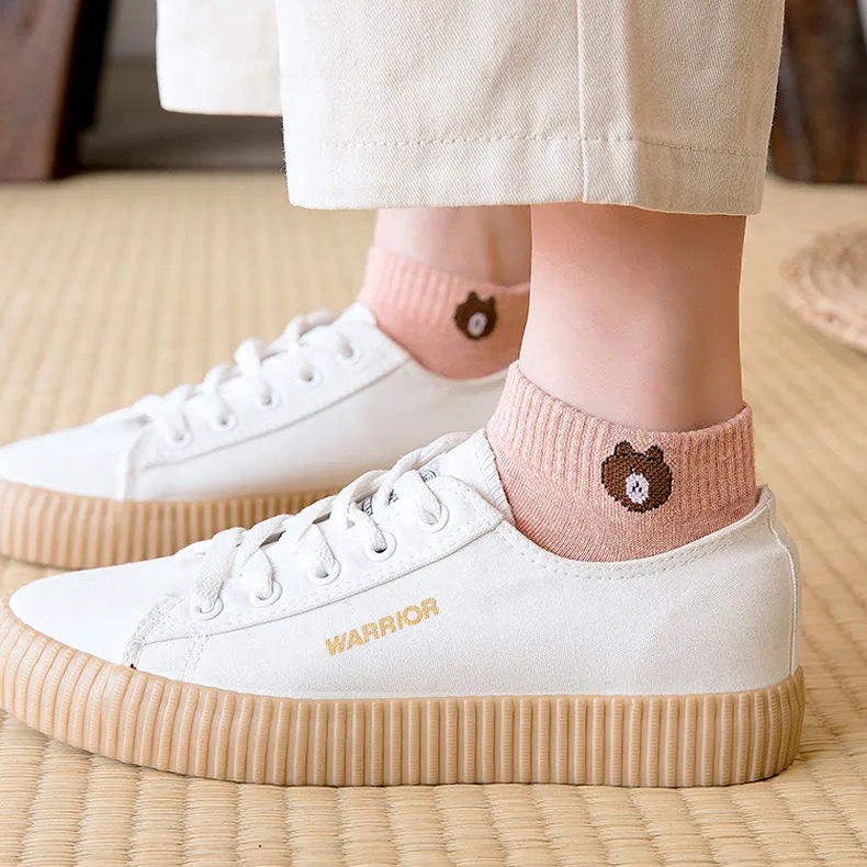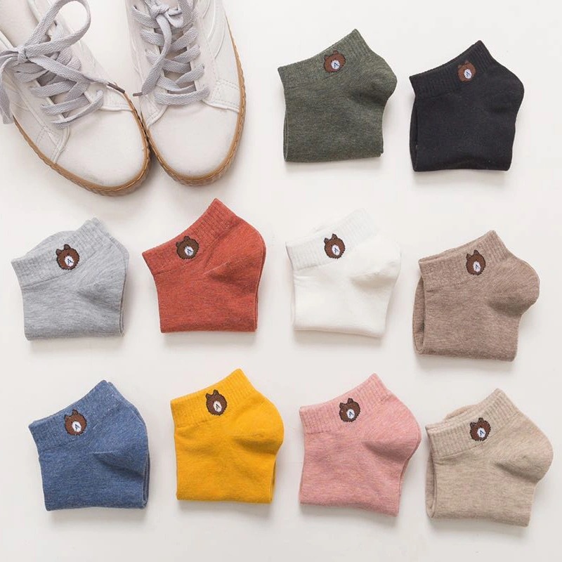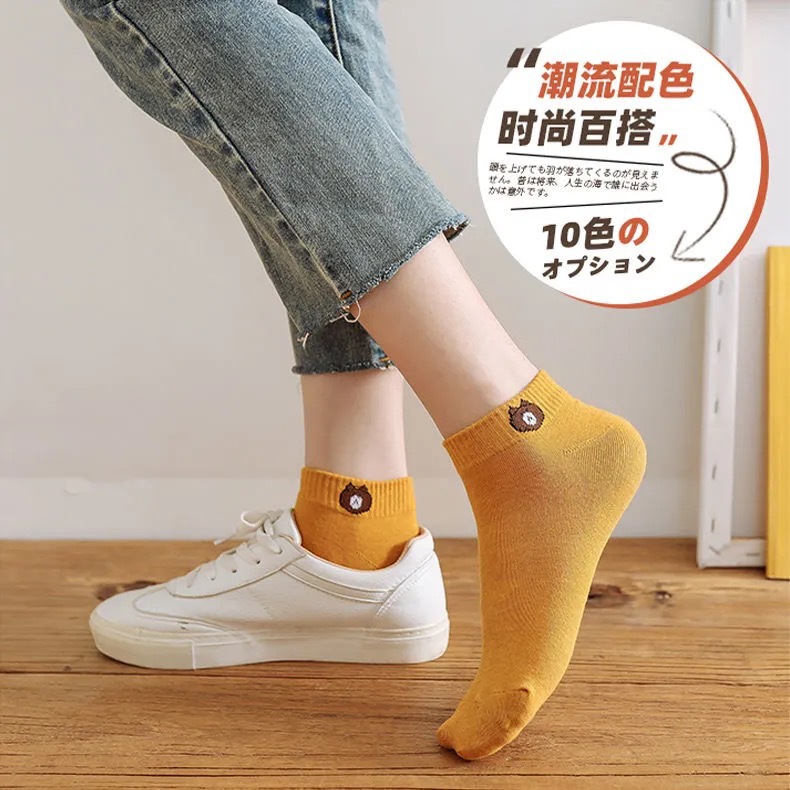 Дышащие носки в Корейском стиле, женские весенне-летние короткие студенческие носки с мелким ртом, невидимые носки-лодочки с медведем, женские носки с карманами