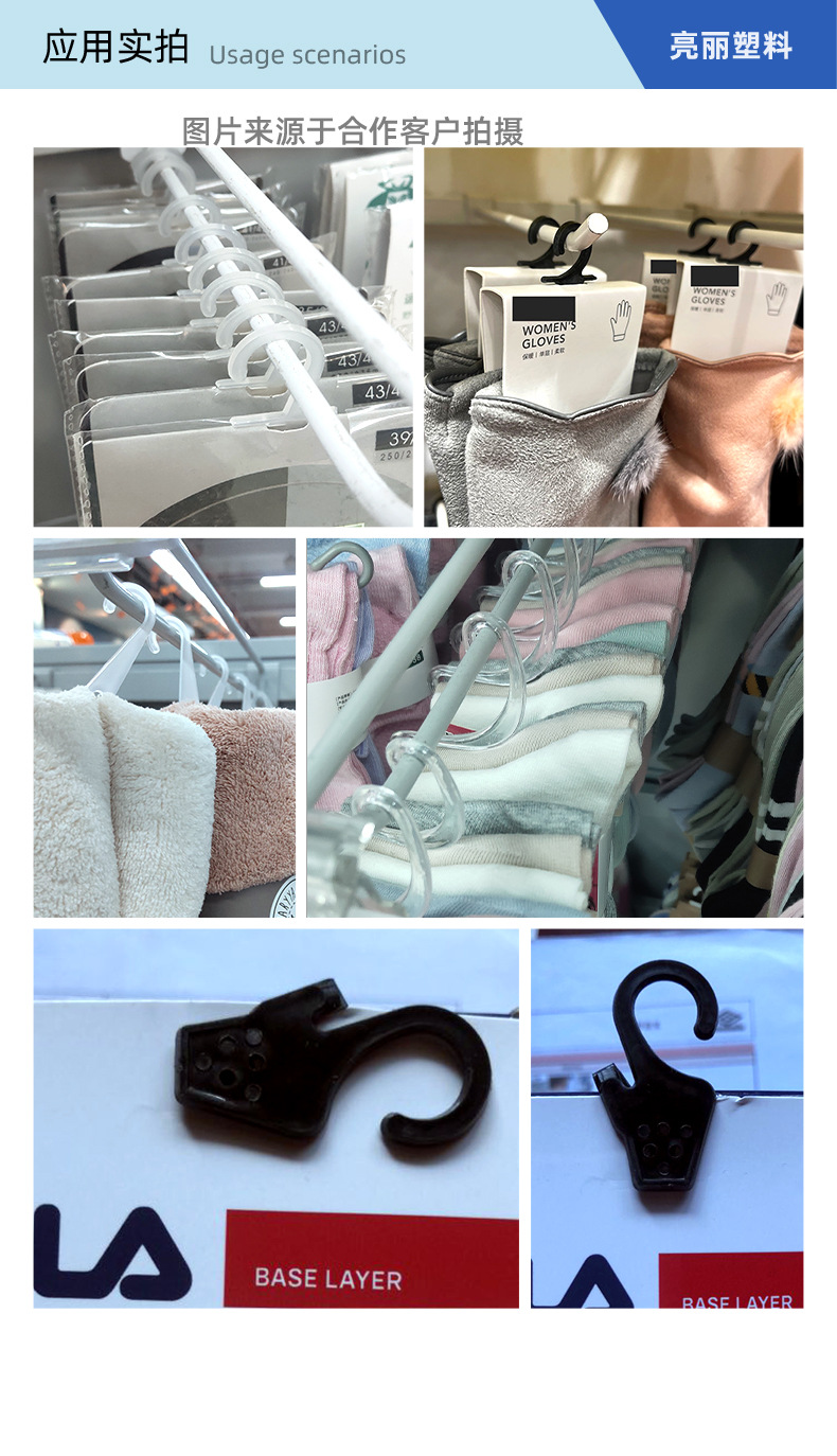 Прозрачные крючки для носков, пластиковые крючки, упаковка из черно-белой бумаги, аксессуары для премиальных полок, маленькие крючки, в наличии от производителя.