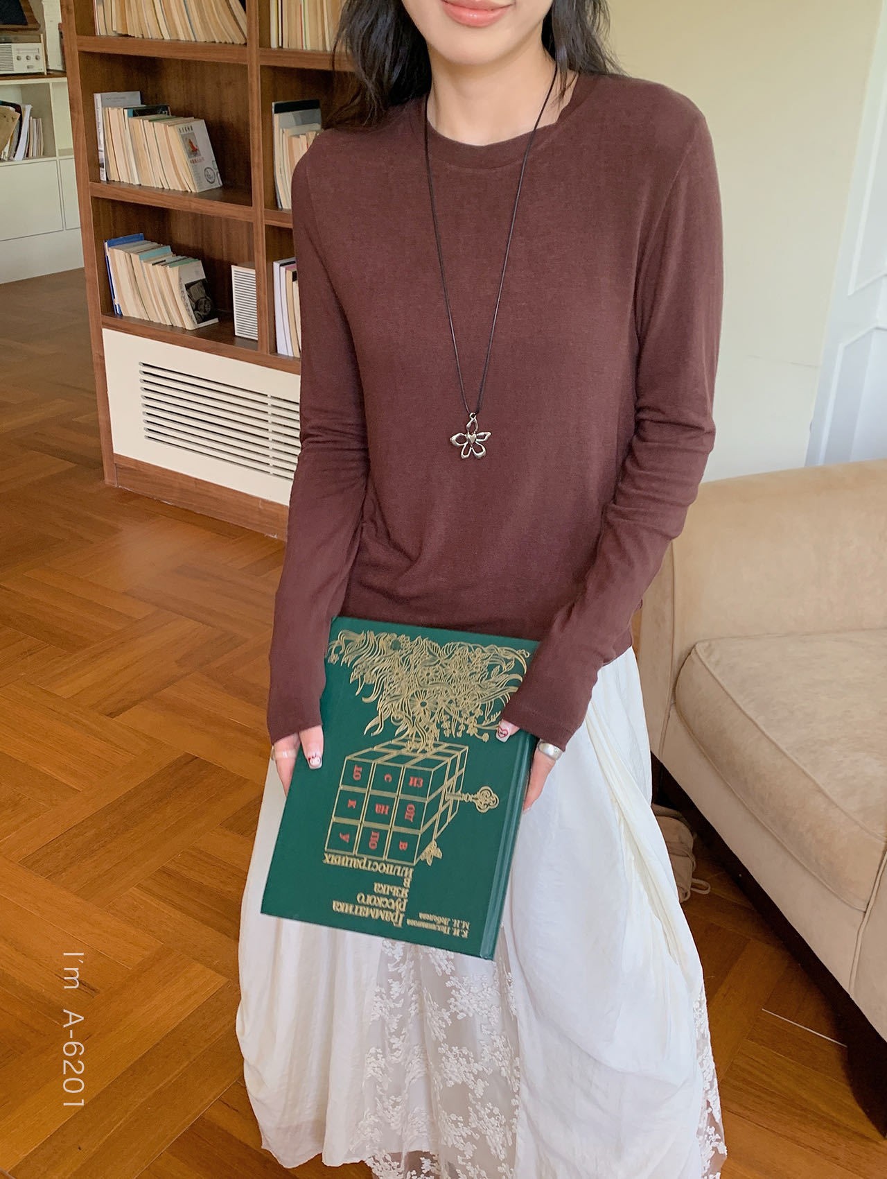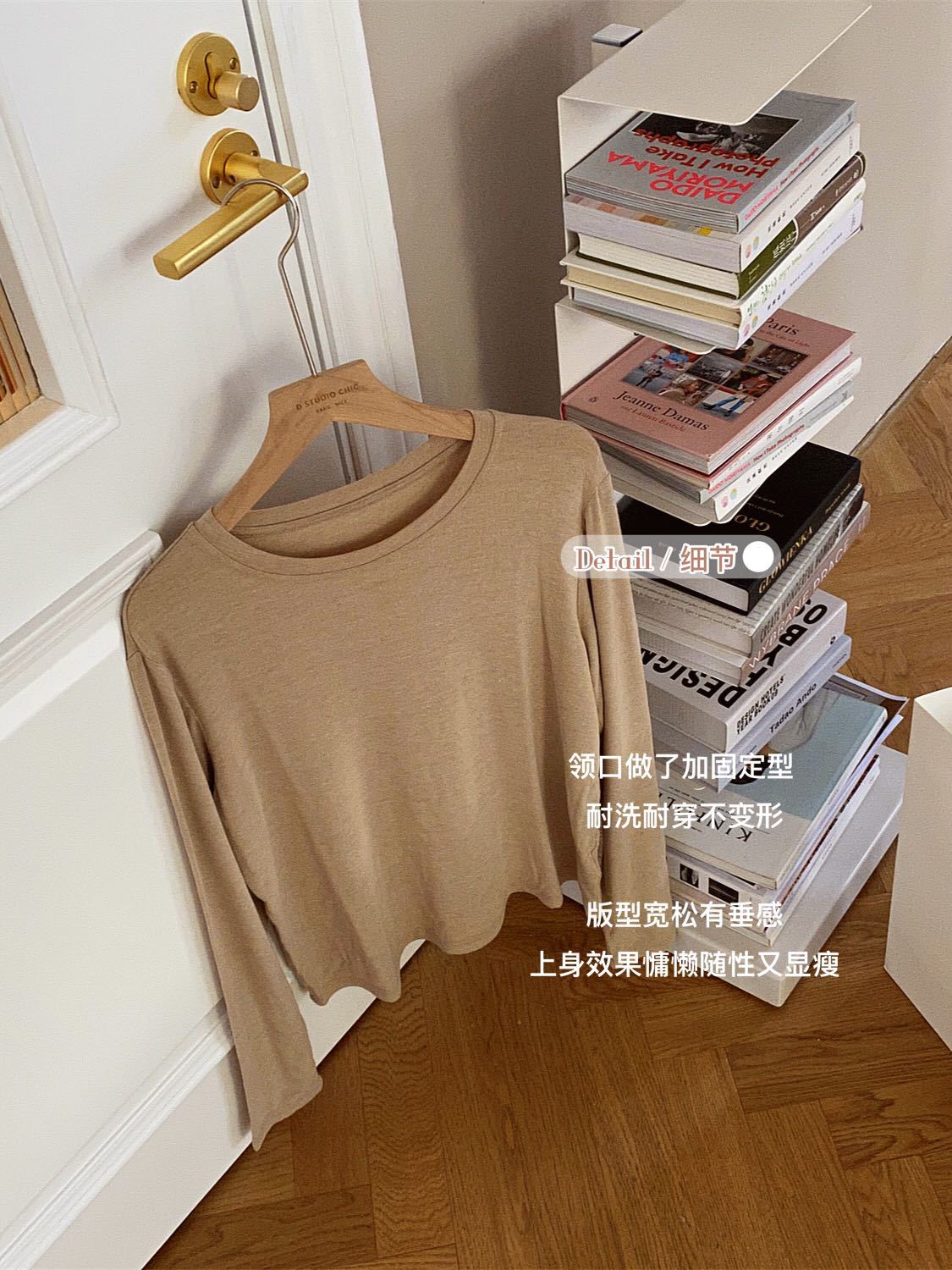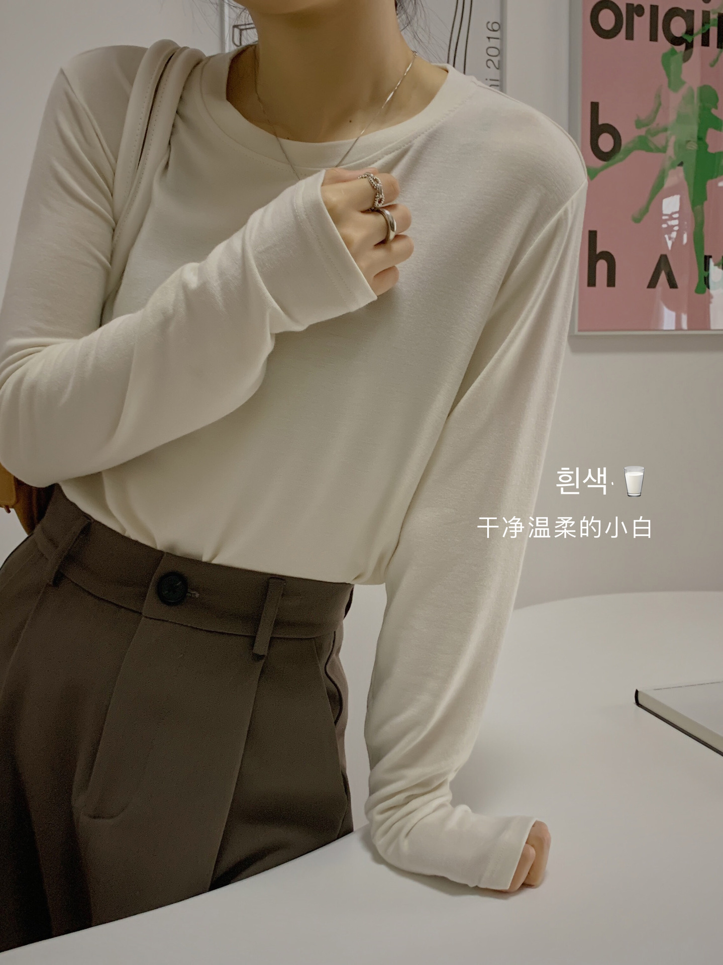 AMOMI новая хлопковая нижняя рубашка в Корейском стиле с длинными рукавами мягкая Базовая Мягкая футболка с круглым вырезом нежный Топ