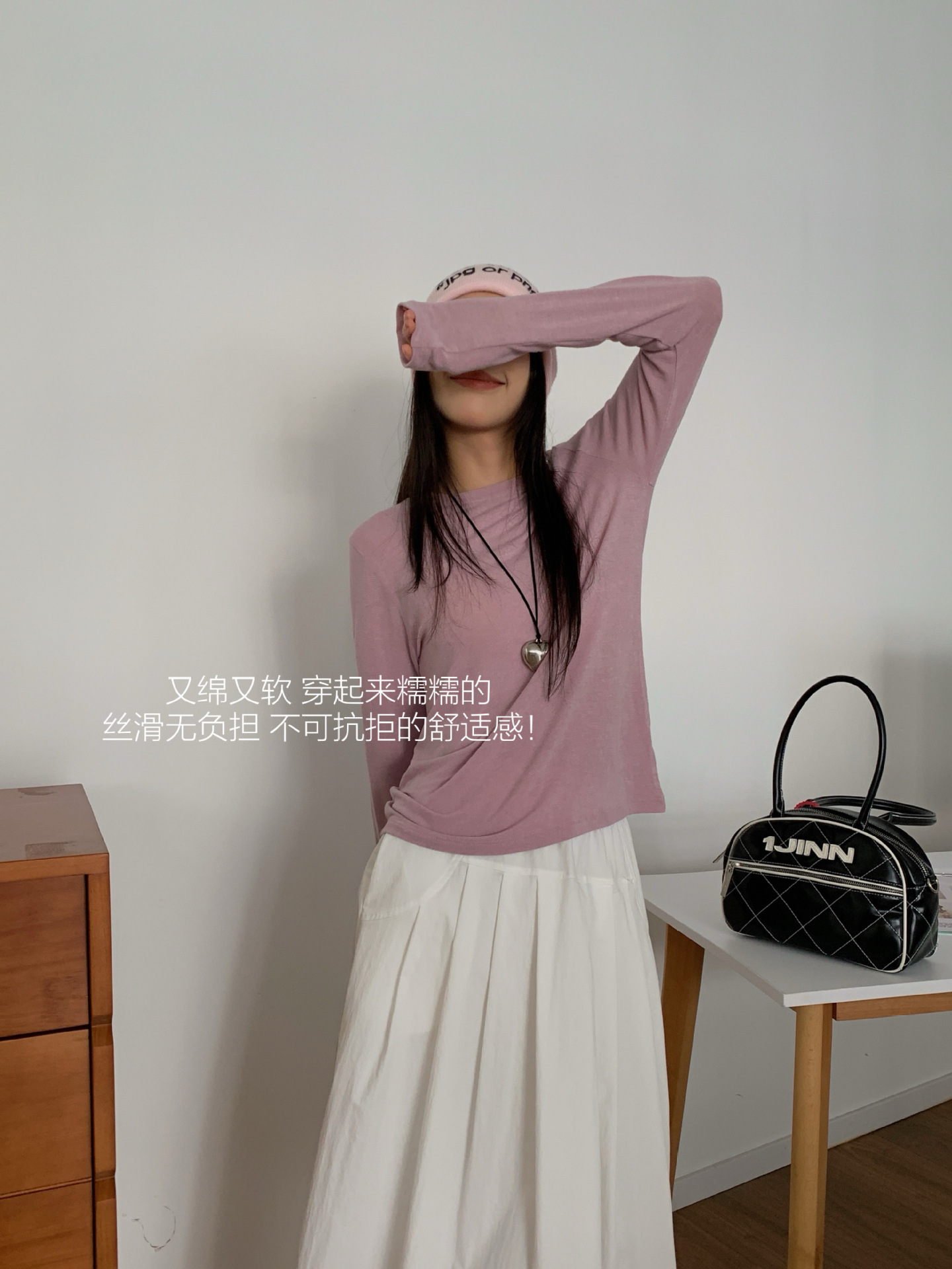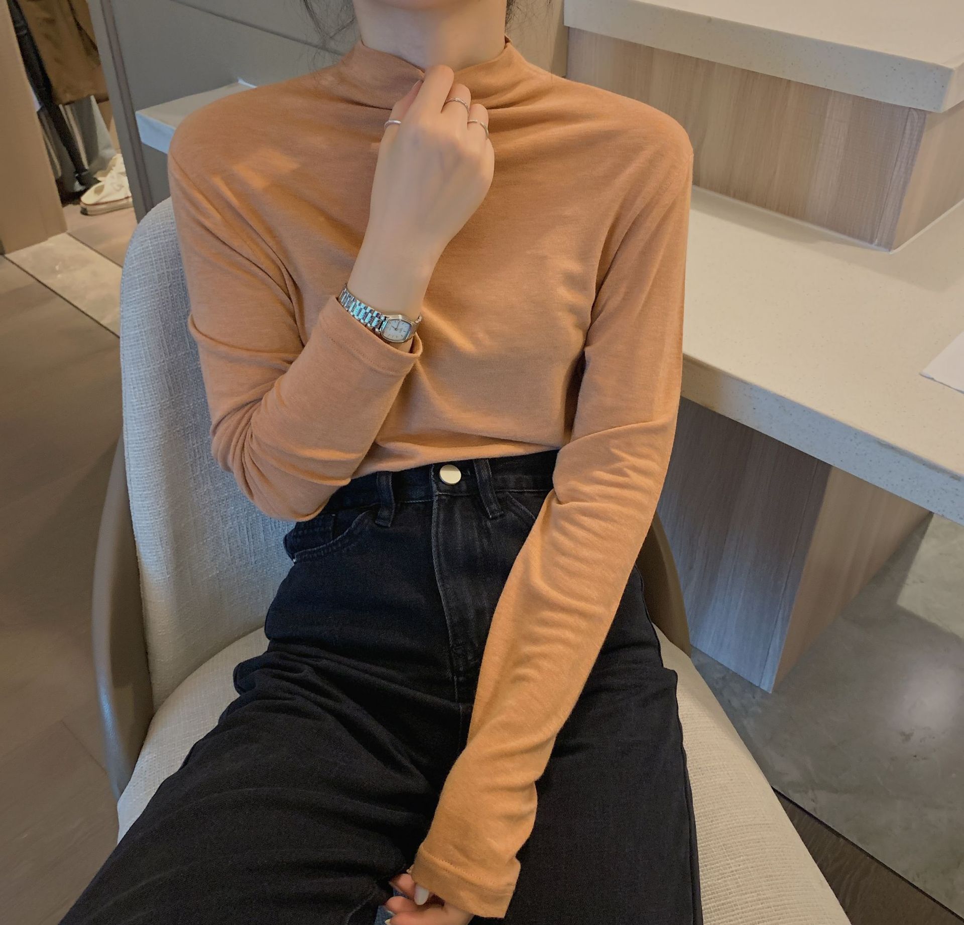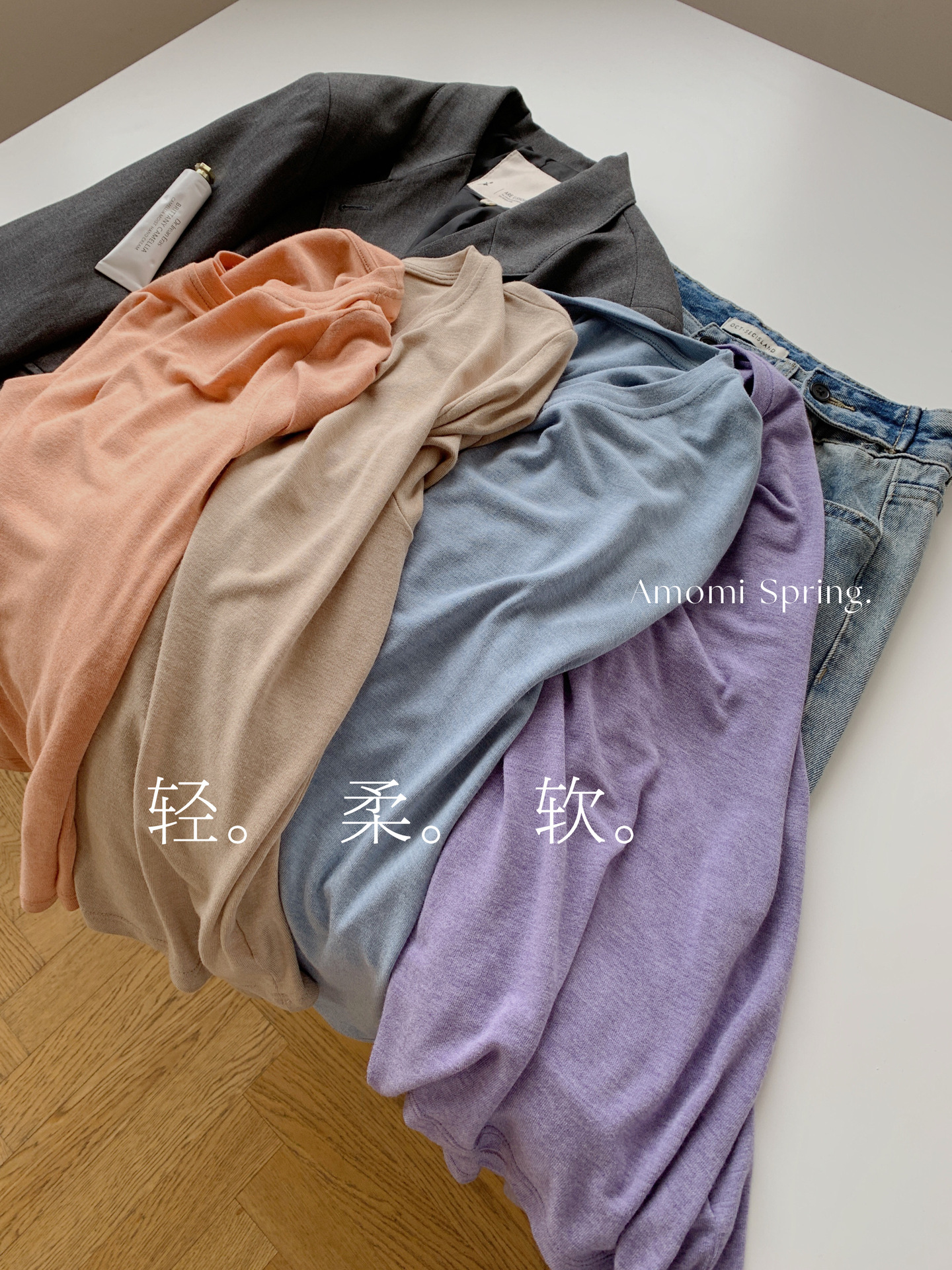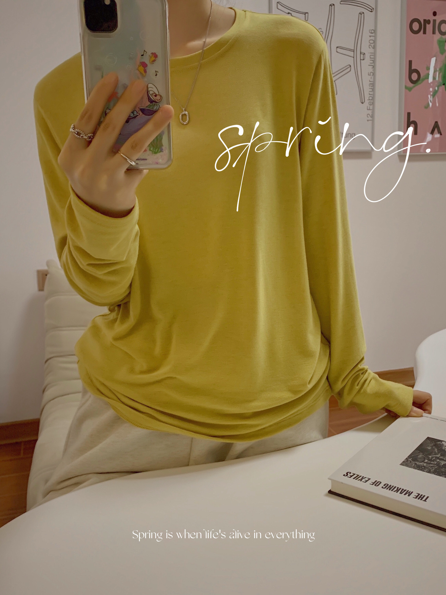 AMOMI новая хлопковая нижняя рубашка в Корейском стиле с длинными рукавами мягкая Базовая Мягкая футболка с круглым вырезом нежный Топ