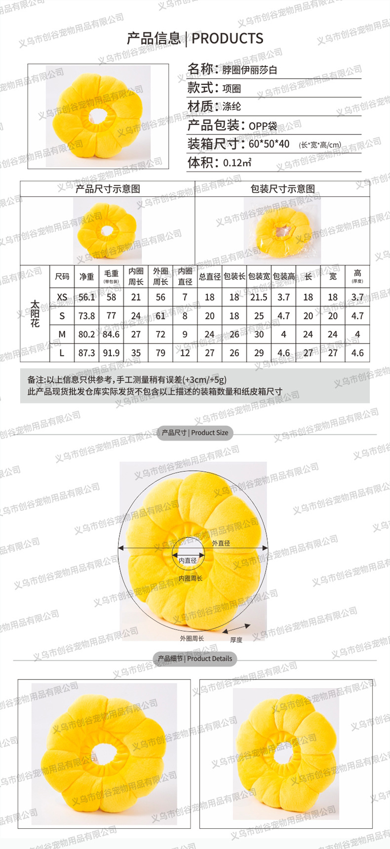 Подсолнух Желтое кольцо Элизабет Мягкое кольцо на шею кошки Собаки Стерилизационное кольцо Позорное кольцо Анти-лизание Ошейник для домашних животных
