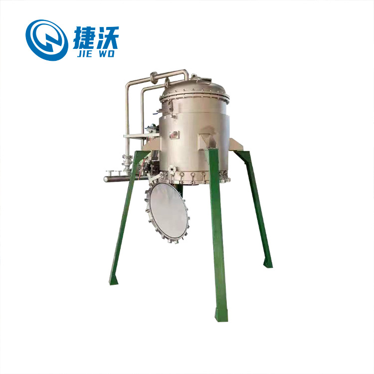 过滤机主体是由壳体、过滤板、起盖结构、自动排渣装置等组成,其中过滤板是由多层不锈钢滤材组成,安装在中心集液管上,拆装清理十分方便。