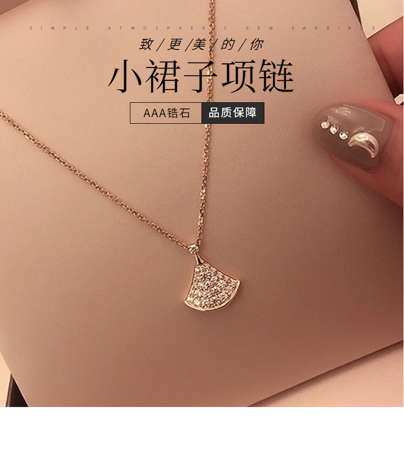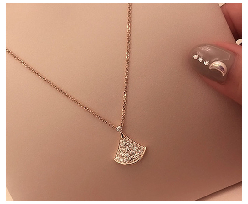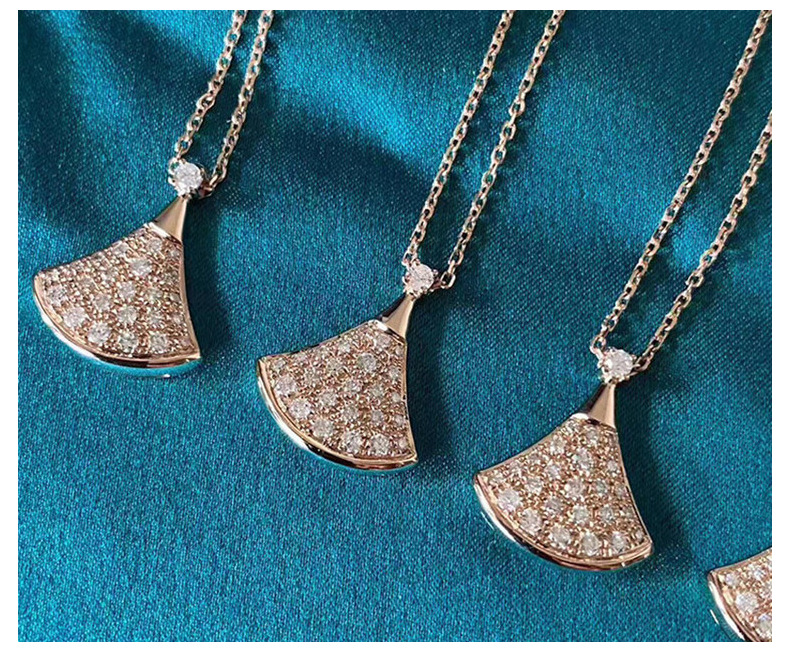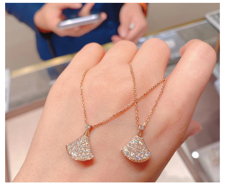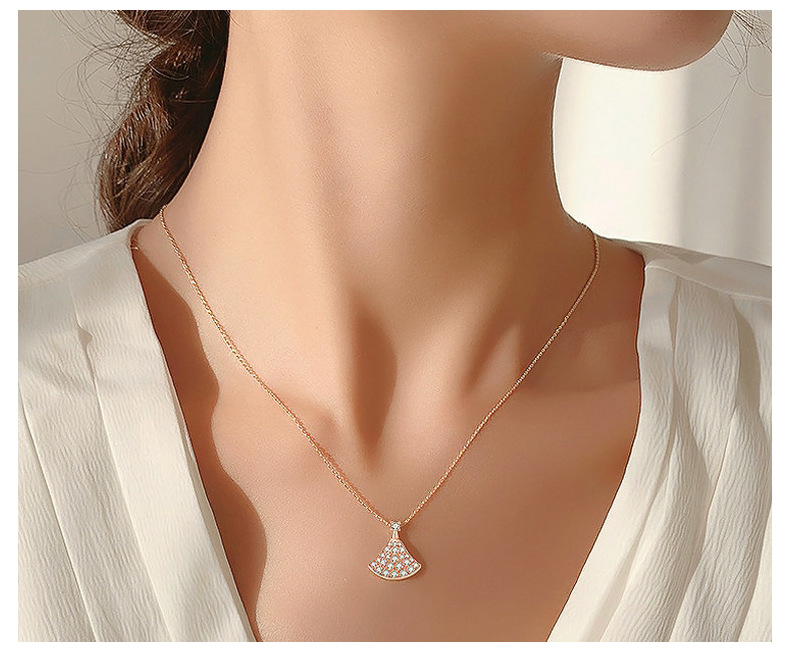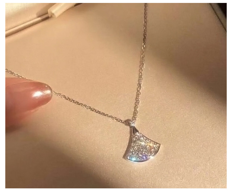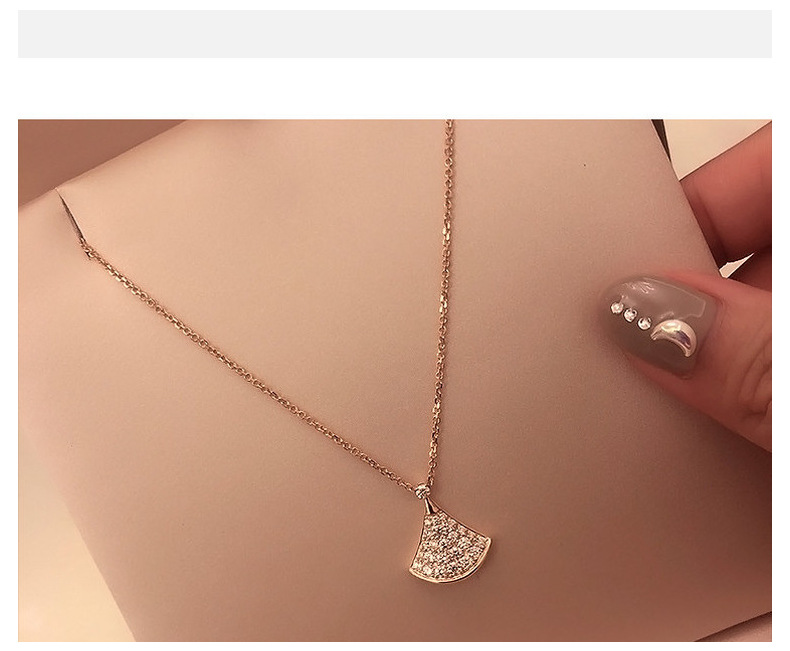 Маленькое веерообразное колье из имитации серебра для женщин, украшенное бриллиантами на ключицу, новая модель из розового золота, легкий люксовый кулон в подарок, товар для прямых трансляций.