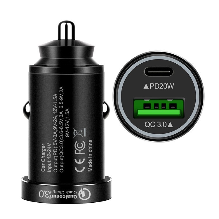 Зарядная головка pd20w автомобильное зарядное устройство Новый алюминиевый сплав двухпортовый USB Автомобильное зарядное устройство qc3.0 Быстрая зарядка pd18w производитель