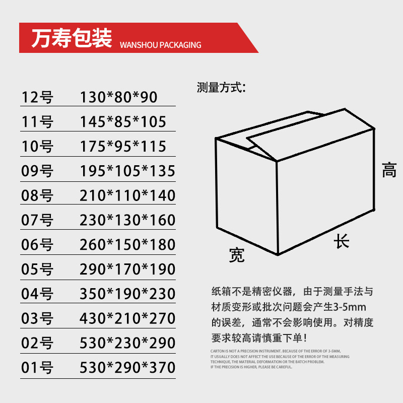 如果用量小又需要印刷,请务必咨询旺旺客服,我们会给您提出较好的建议。如果您里面的物品有棉质品或怕划伤物品,可以提前联系我,根据实际情况来定纸箱是使用胶粘还是使用针订。