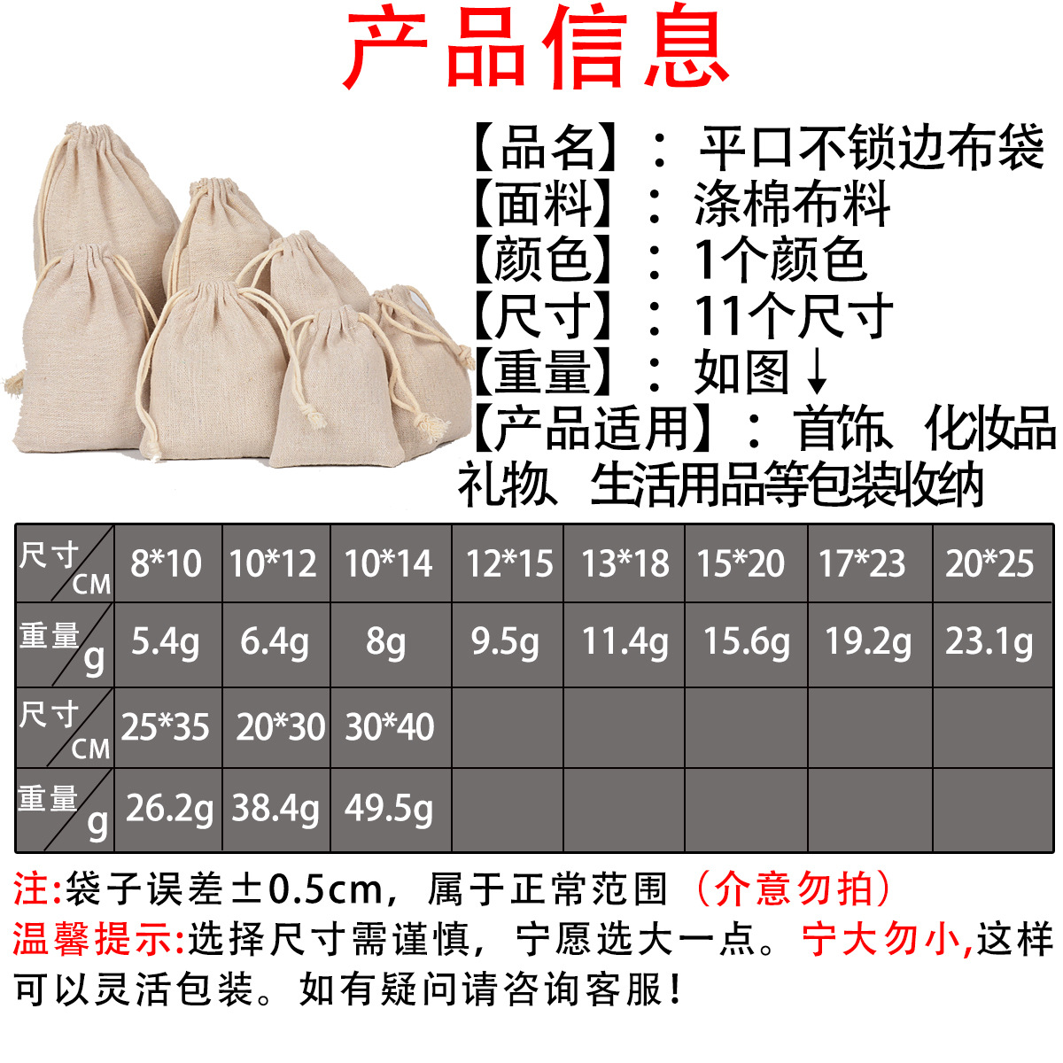 - 产品介绍: 平口不锁边棉布袋 可用于衣物防尘,物品收纳,日用品袋 ,化妆品袋