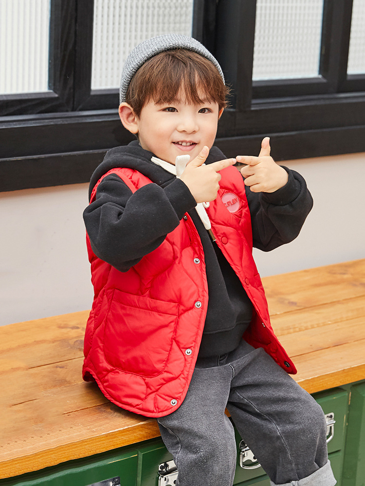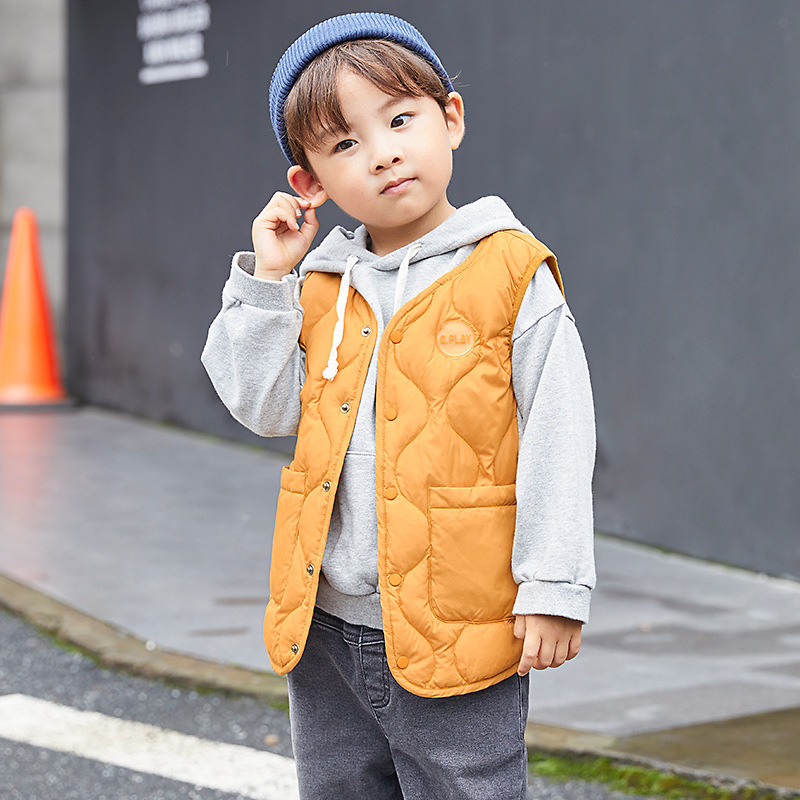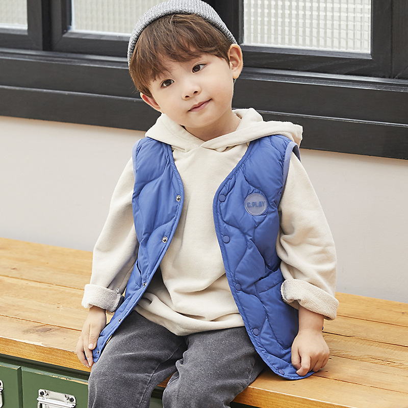 Новый детский осенний и зимний пуховик жилет для мальчиков и девочек тонкий теплый жилет 90 белый утка 2A660