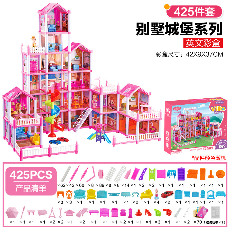 | DSJ589-B:【425件套】 | 六层22房+4阳台+院子+滑梯+滑滑梯+楼梯+2小车 | 英文彩盒 | 96x57x88cm | 42x9x37cm | 12盒 | 70*44*76cm |