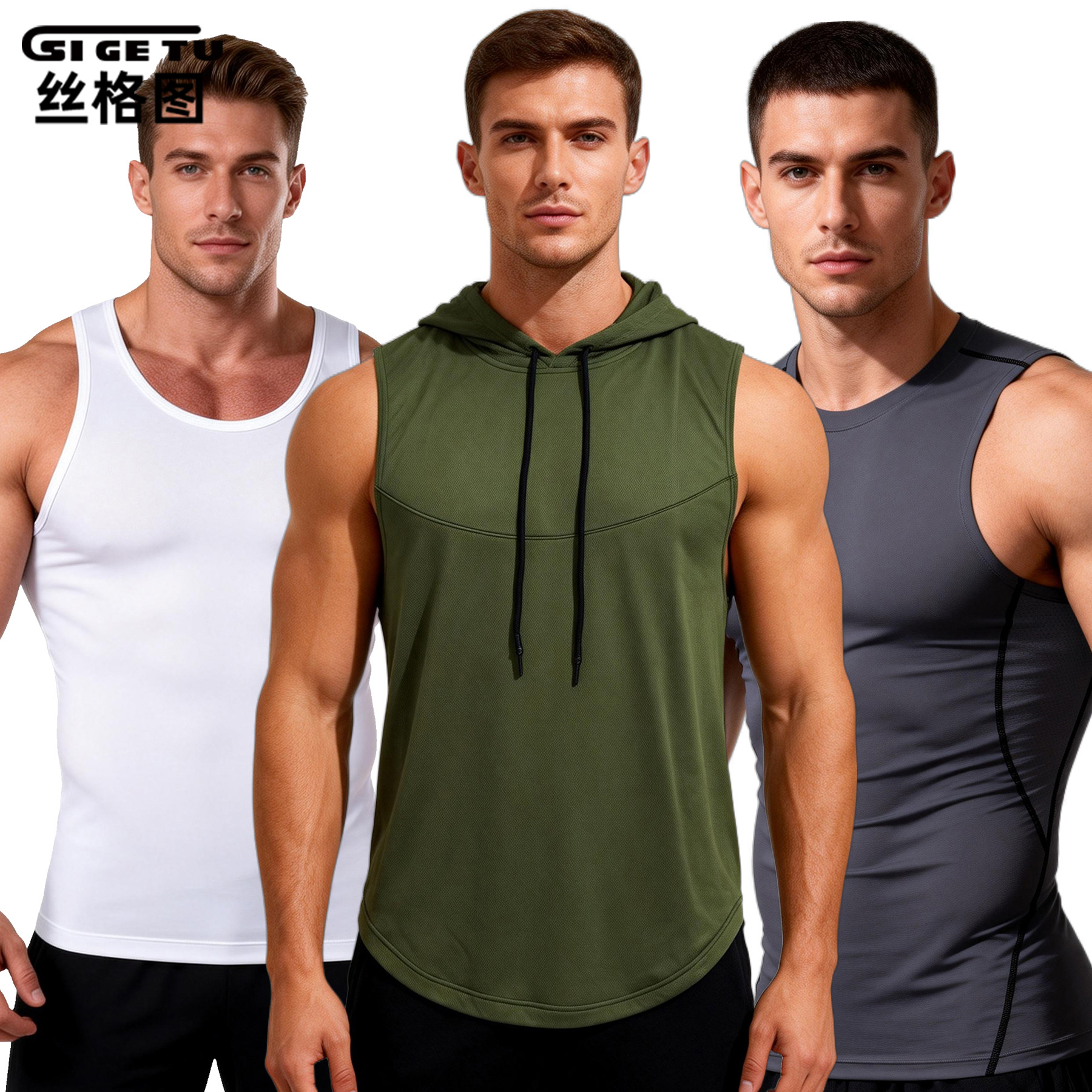 Спортивная майка Sige Tu для мужчин, летняя облегающая базовая футболка для фитнеса, быстросохнущая майка для баскетбола и бега.