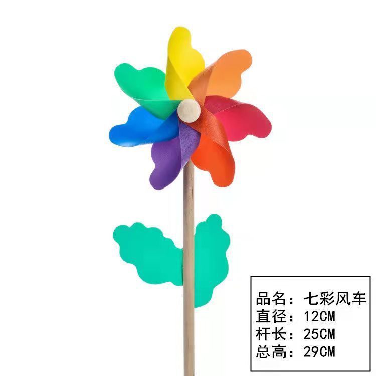 Красочная ветряная мельница с деревянным столбом оптом детские игрушки детский сад живописное наружное украшение 24CM32CM садовая ветряная мельница