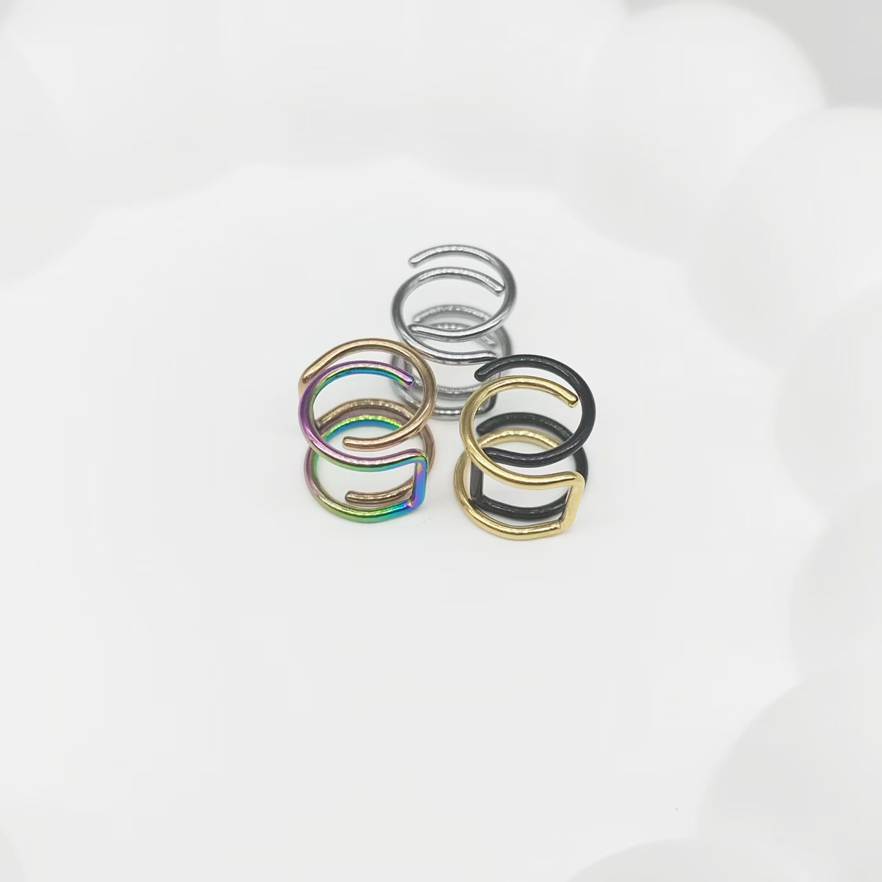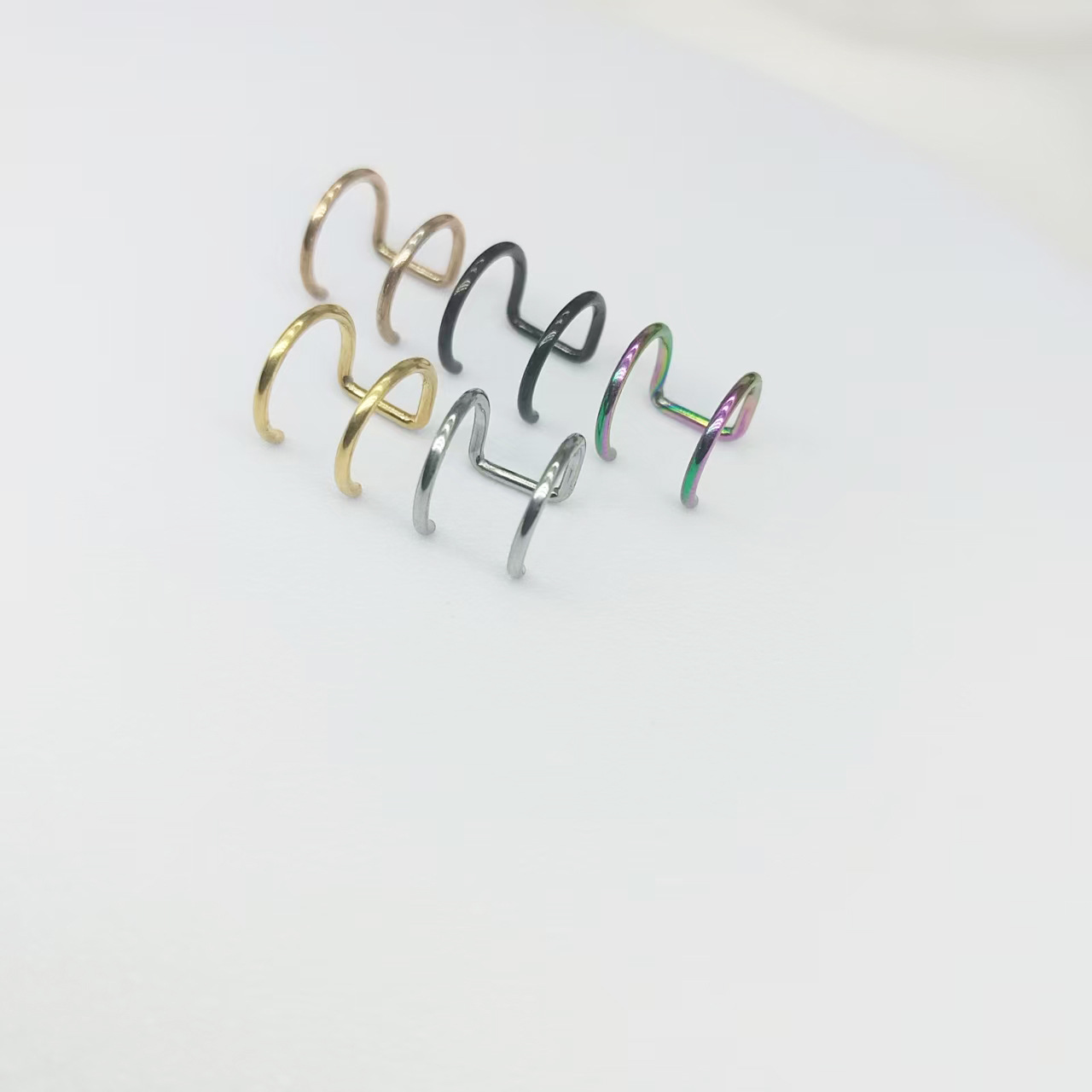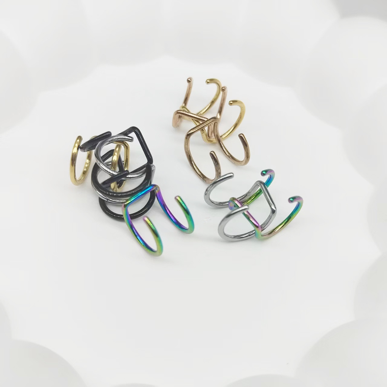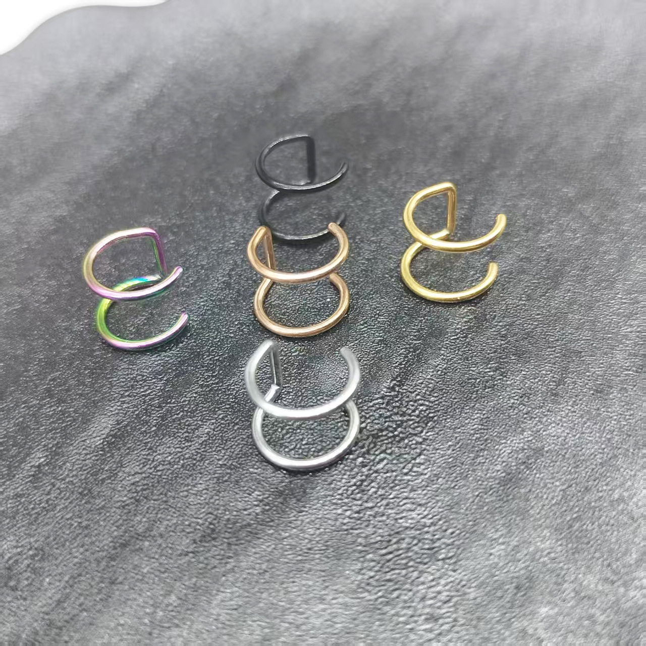 Прямые поставки с фабрики: двухкольцевые клипсы из нержавеющей стали, многокольцевые серьги, пирсинг для тела, носовые кольца, многокольцевые изогнутые серьги для носа.