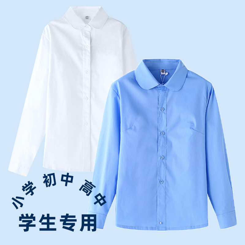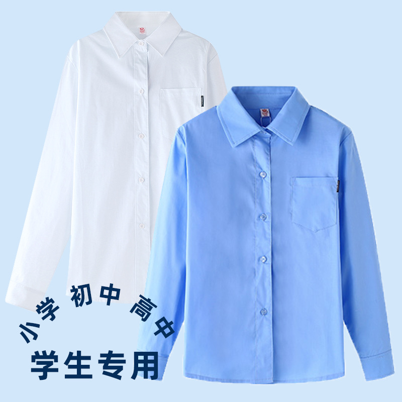 Мальчики и девочки белая рубашка с длинным рукавом Хлопок детский корейский стиль синяя рубашка Весна и осень западный стиль Шэньчжэнь начальной школьной формы