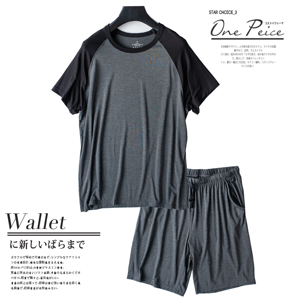 【产品名称】莫代尔男插肩袖短袖半裤套装 可外穿 家居凉爽