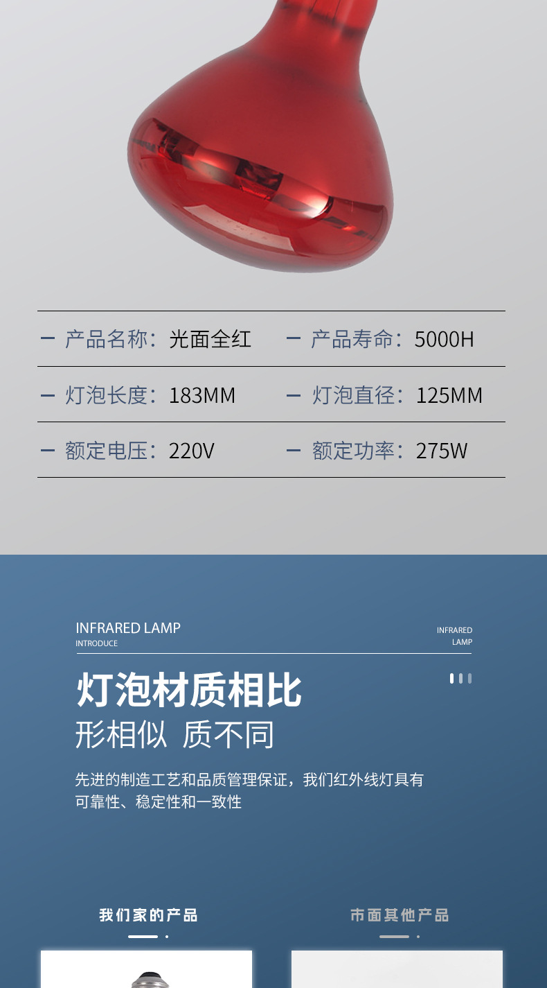 220В275Вт глянцевый, полностью красный; 110V275W глянцевый, полностью красный