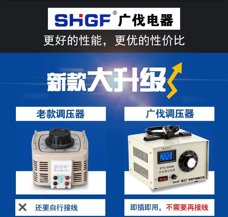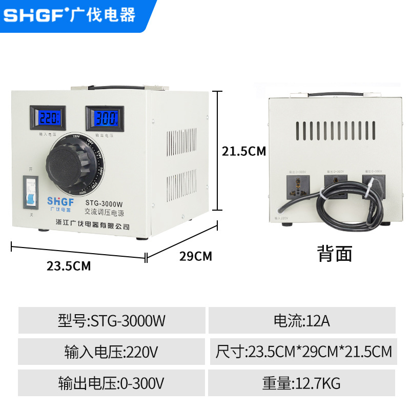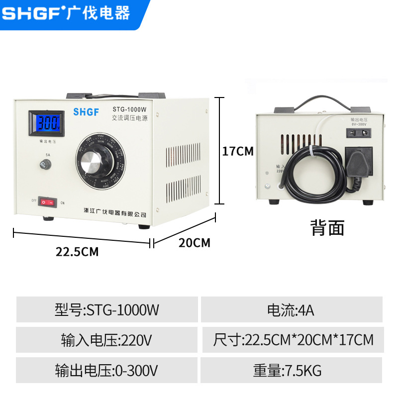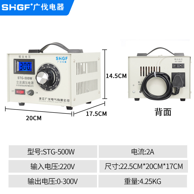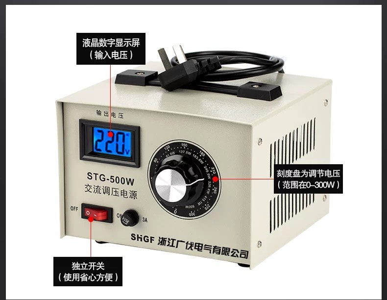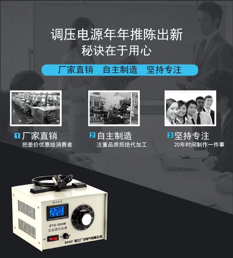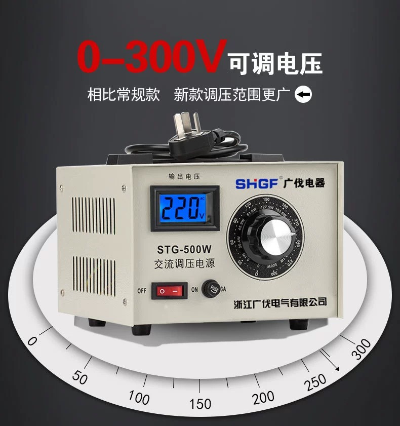 Однофазный регулятор напряжения Guangfan 220 В переменного тока Регулируемый контакт 0-300 В Регулируемый STG-500W трансформатор регулирования напряжения