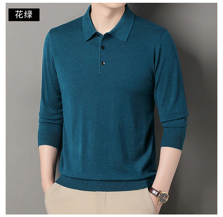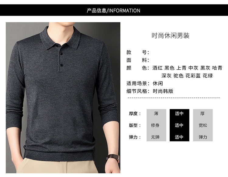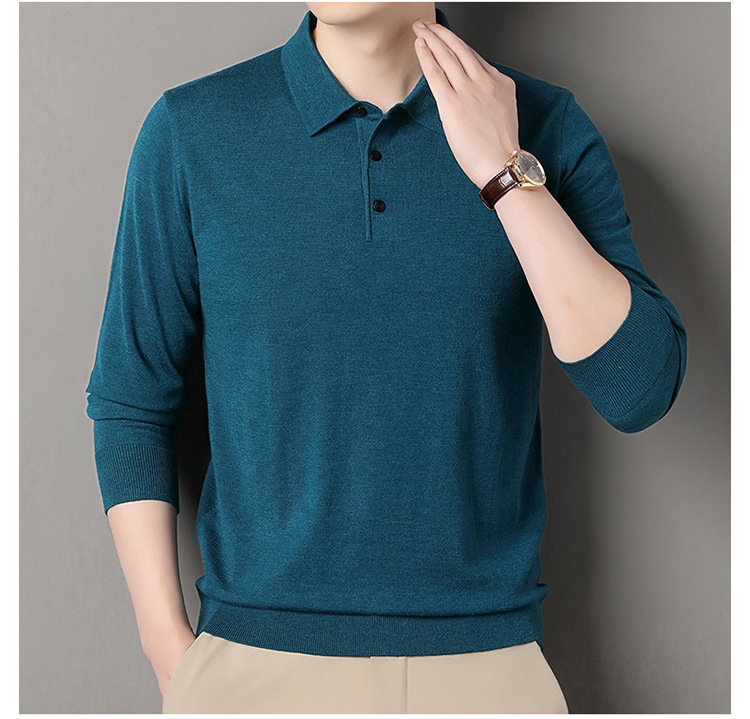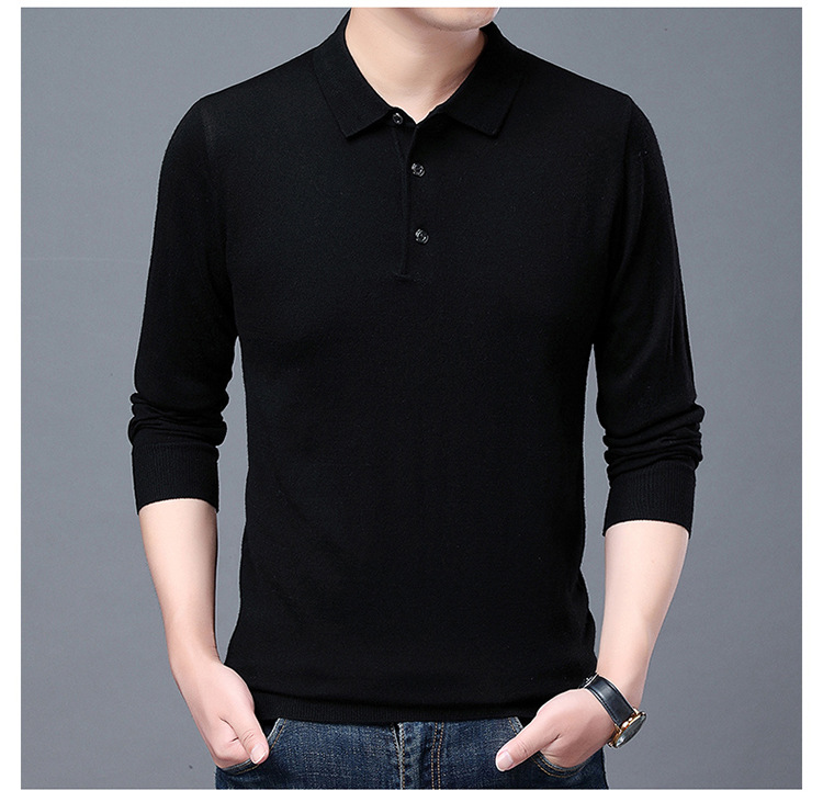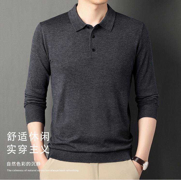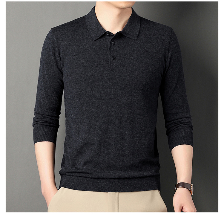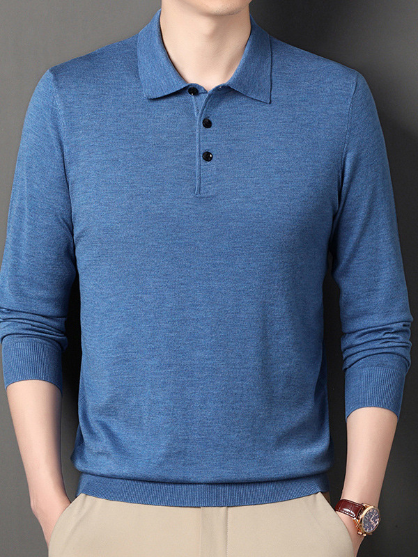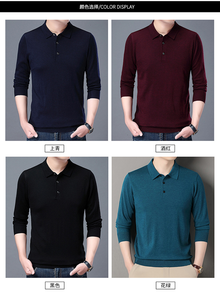 Мужской вязаный свитер на осень, однотонный, с воротником-поло, 6% шерсти, повседневный модный пуловер, стильный базовый слой для мужчин.