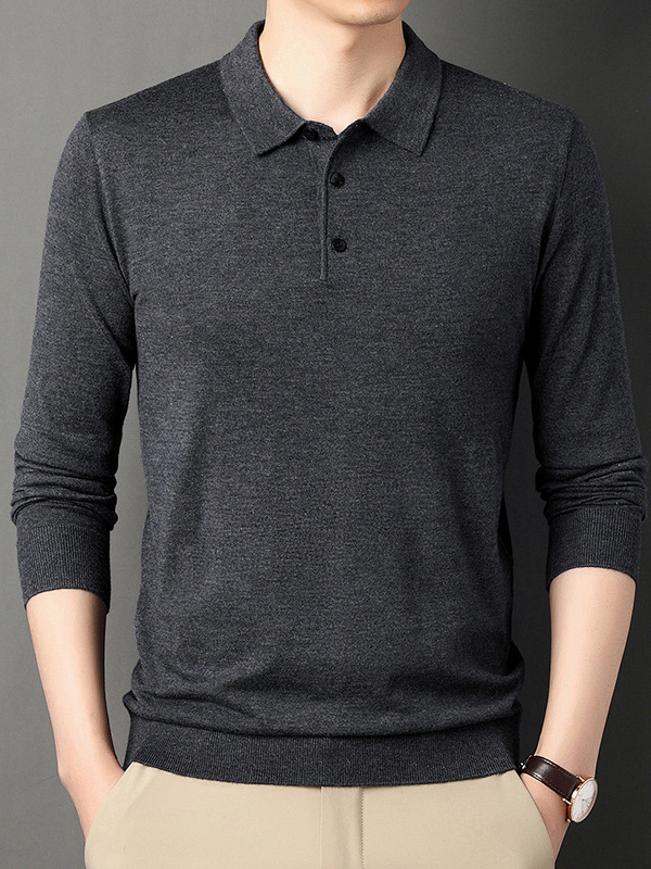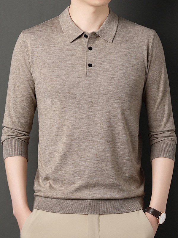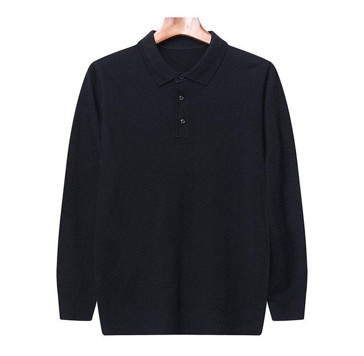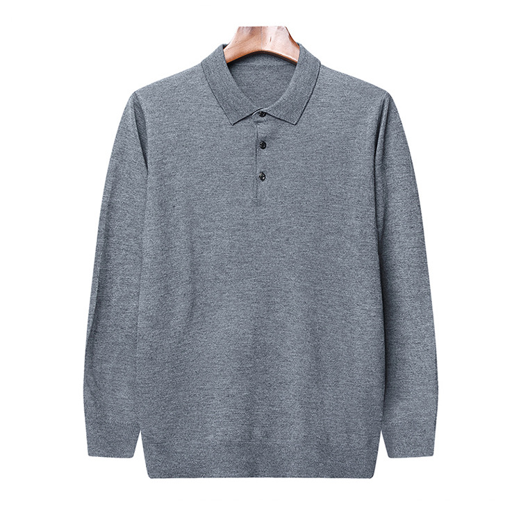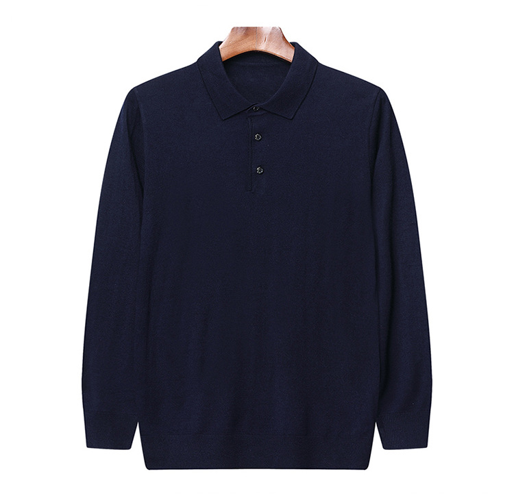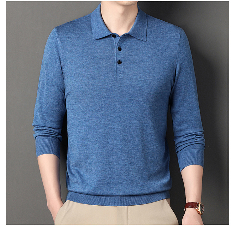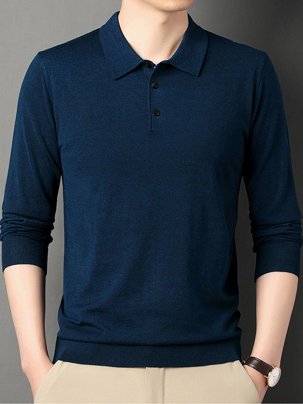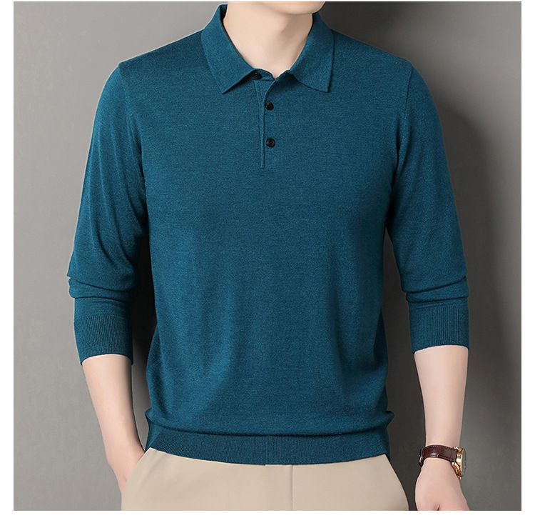 Мужской вязаный свитер на осень, однотонный, с воротником-поло, 6% шерсти, повседневный модный пуловер, стильный базовый слой для мужчин.