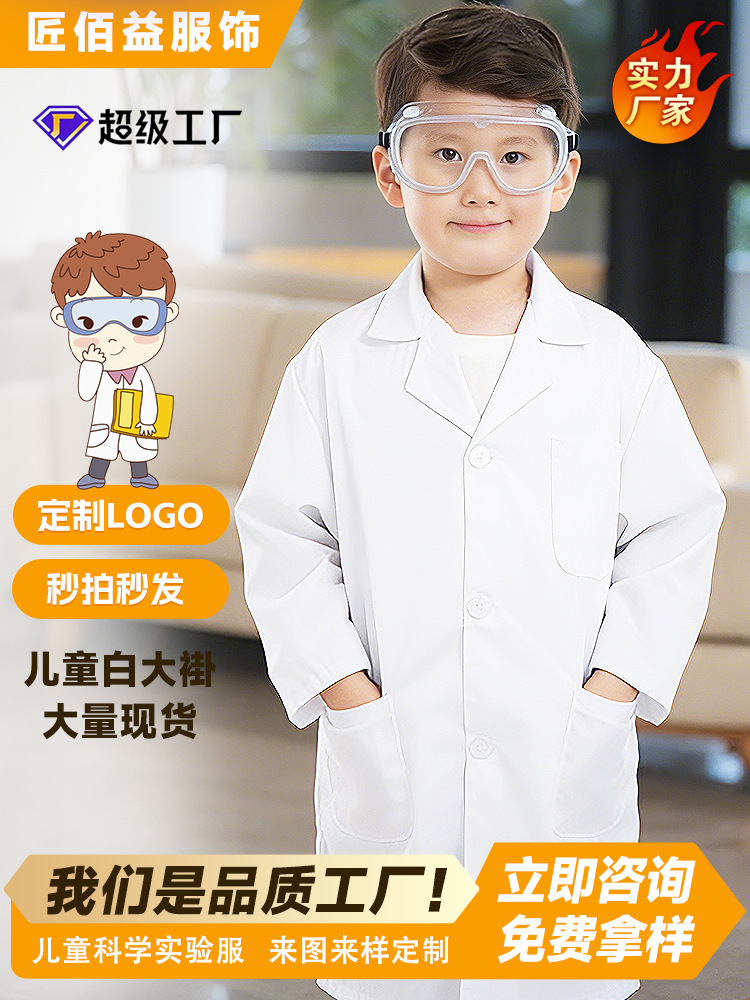 Трансграничная рабочая одежда, детские белые пальто, униформа врача, униформа для научных экспериментов, униформа медсестры для ролевых игр в детском саду.