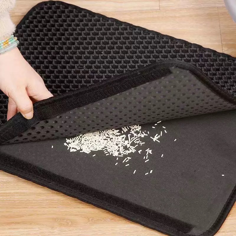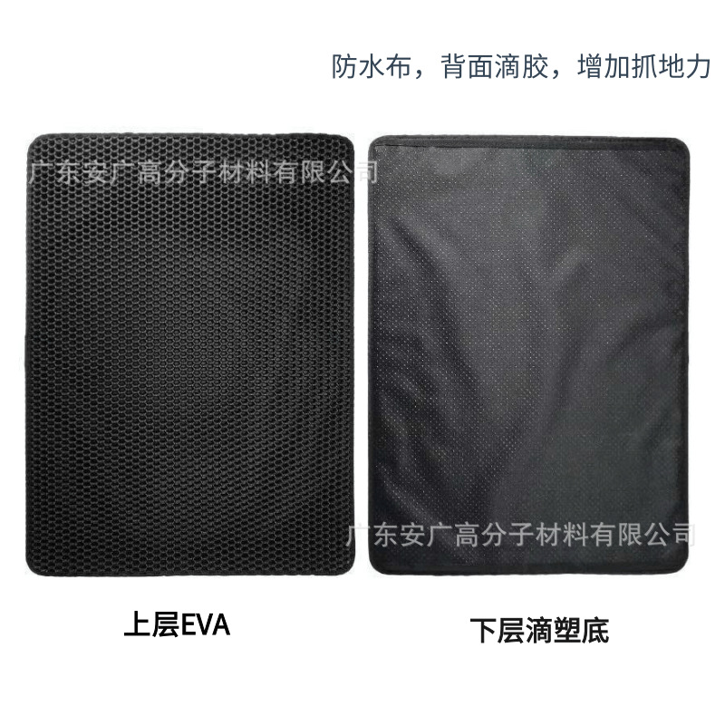 包装方式:我厂出货为裸装出货、如需包装请和客服沟通说明, 产品功能:适用95%以上种类的猫砂,上层通孔材料,猫砂可轻易通过,下层防水材质,猫砂、小便等脏物可聚集于此。猫砂垫为上下双层设计:上层采用六角形的洞孔凹凸设计,除了让猫砂落入后不再溅出外,圆球型的柔滑触感也可以避免猫咪抓坏,下层垫密封专门存放猫砂,底部设计成规则性的圆孔,有效防滑避免横冲直撞的猫咪滑到受伤。