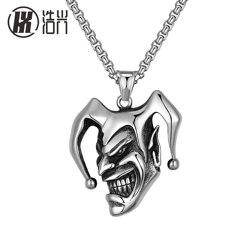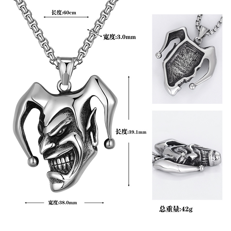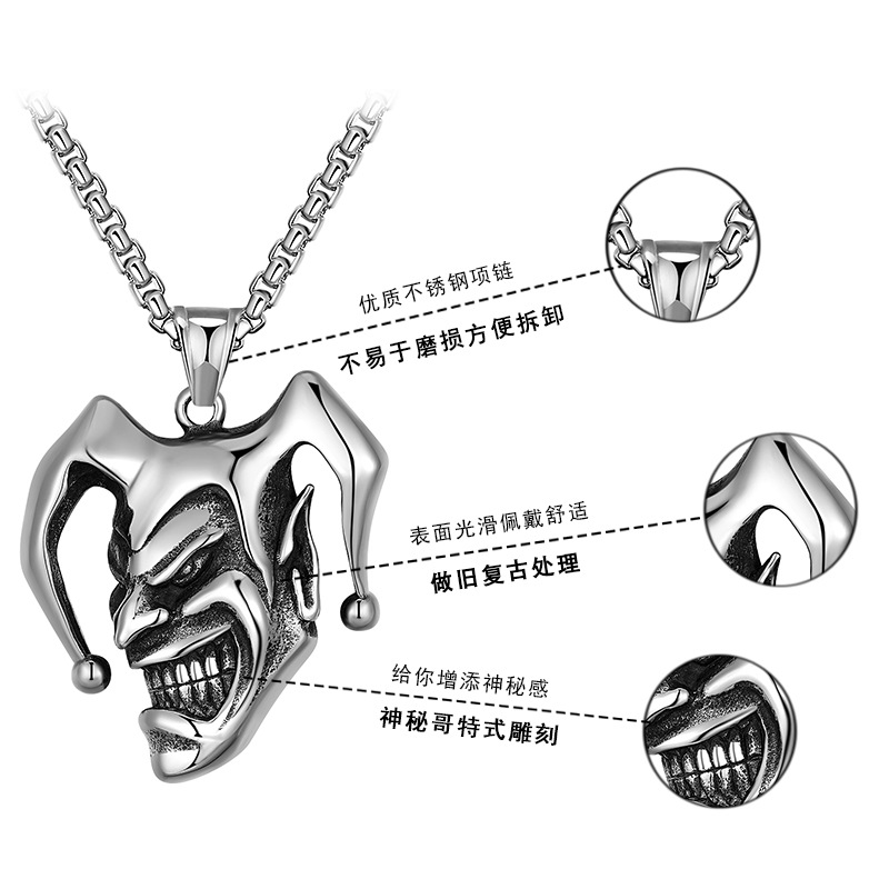 欧美跨境饰品邪恶小丑笑脸项链不锈钢吊坠男士复古潮牌钛钢配饰 |