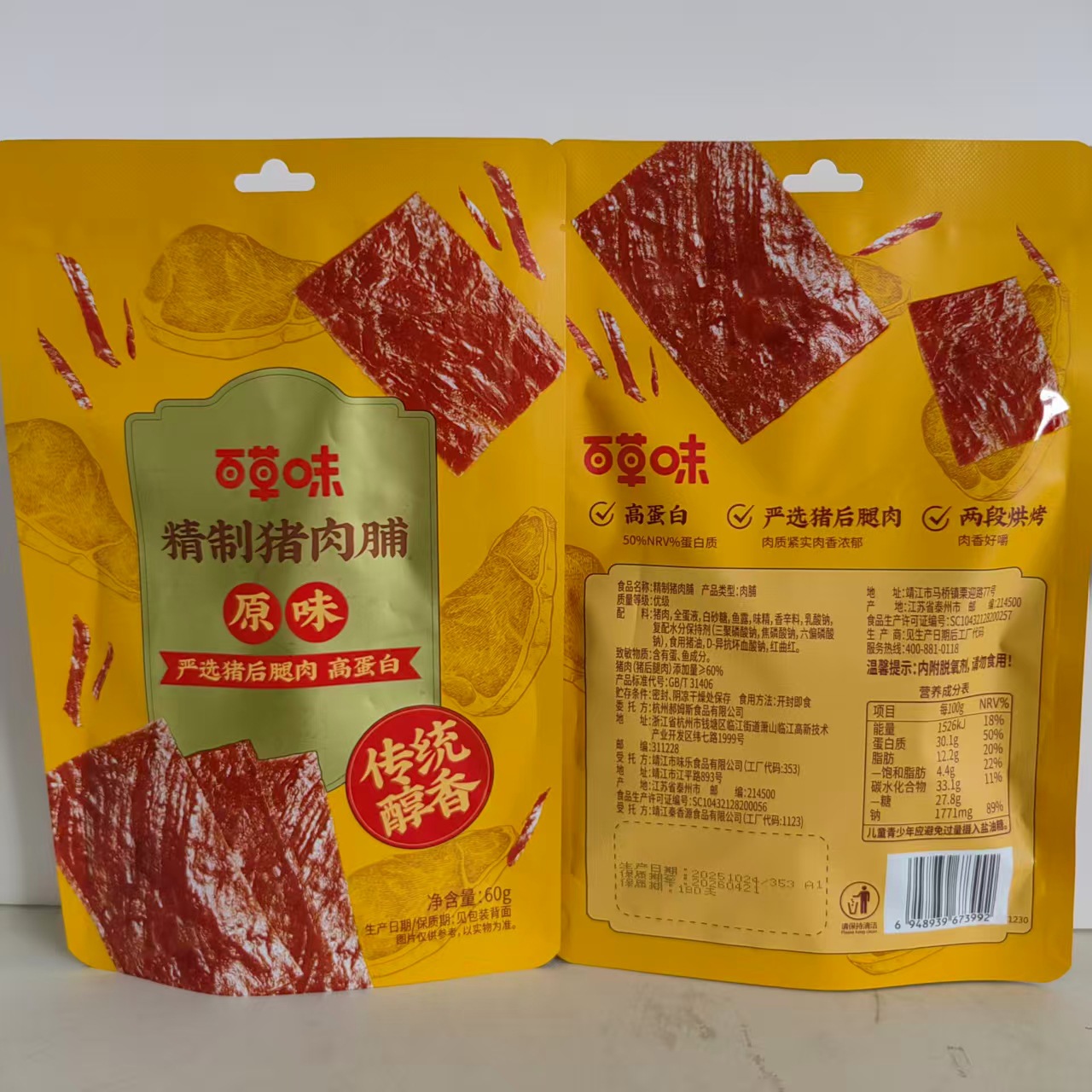 Белый кунжут с курицей, 60 г – Новая и старая упаковка отправляются случайным образом; Байкао очищенная свинина 60 г, смешанная упаковка (новая и старая).