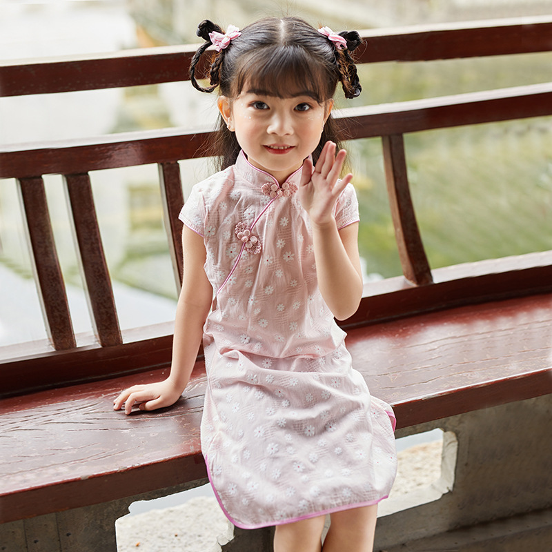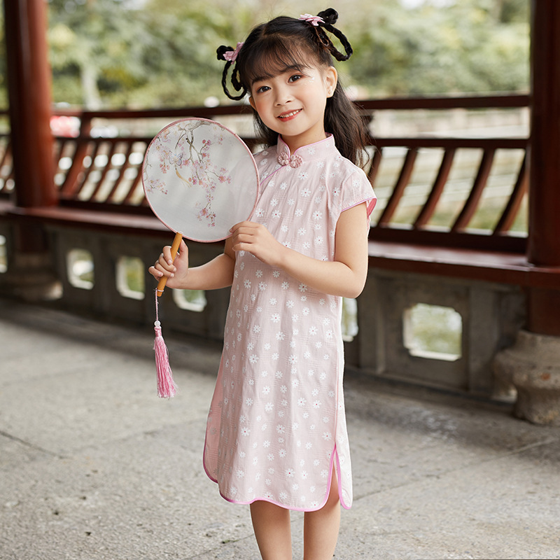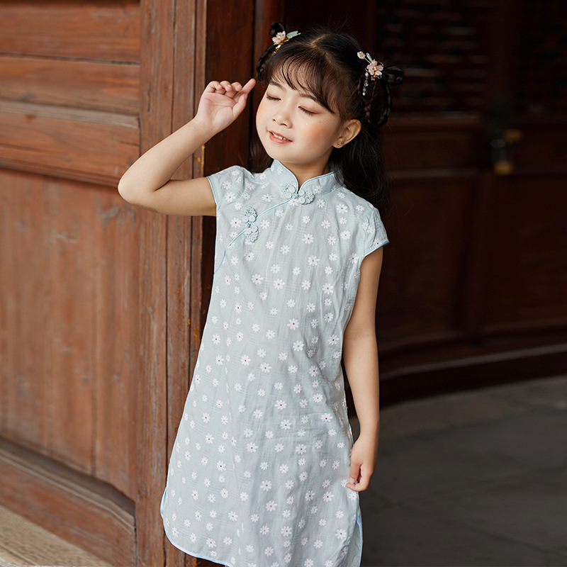 Платье Чонсам для девочек 2024 летнее Новое Детское Хлопковое платье ханьфу Одежда для девочек в западном стиле в китайском стиле
