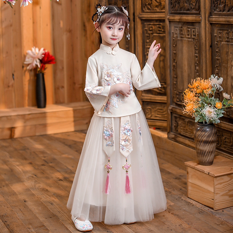 Детский комплект Ханьфу для девочек 2026: новая весенняя коллекция в древнекитайском стиле, руцюнь, сказочный струящийся наряд, комплект из двух предметов, ципао, танский костюм