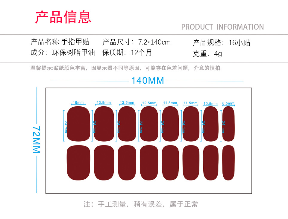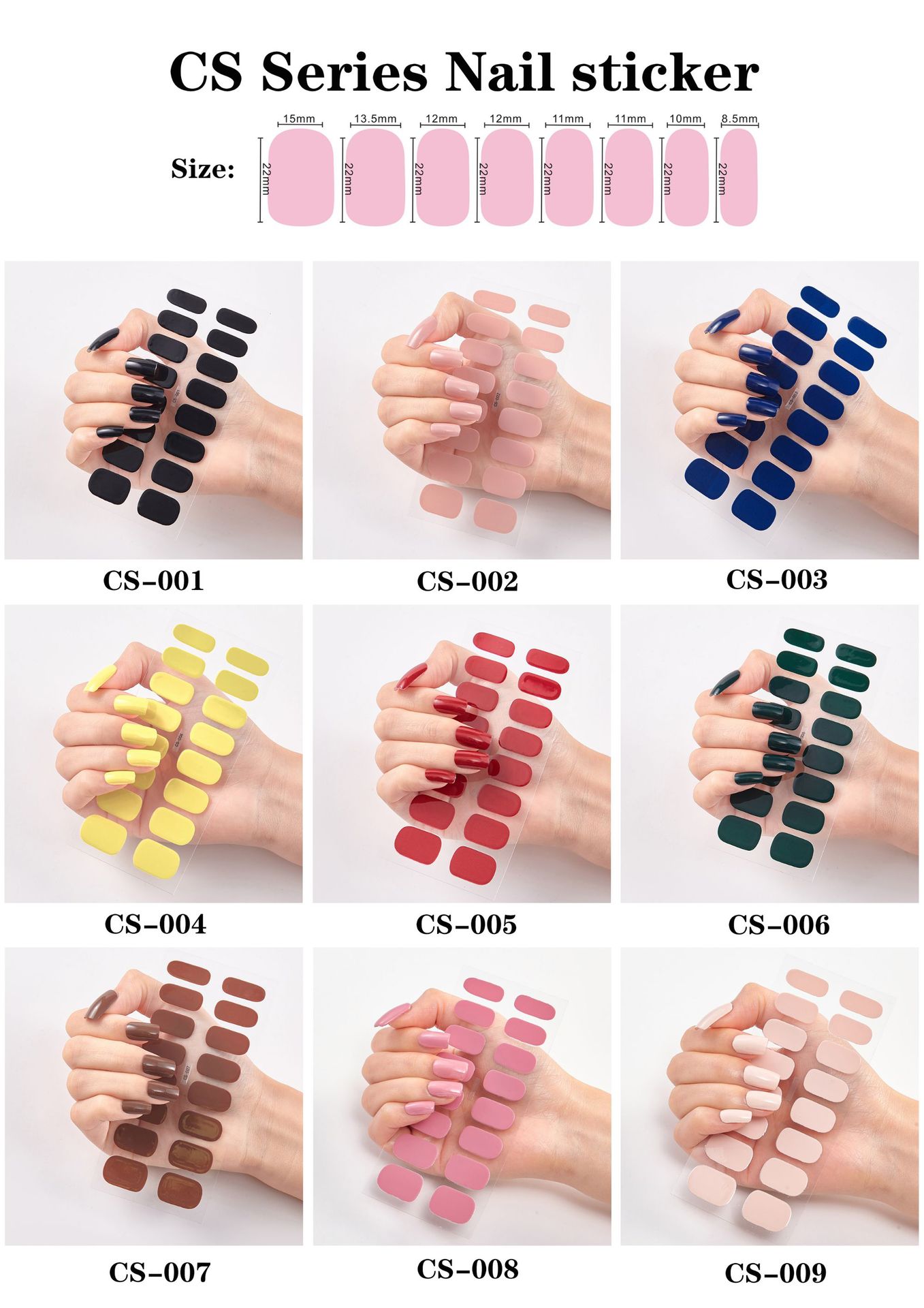 [60 цветов в наличии] Набор из 16 однотонных наклеек для ногтей, простые наклейки для ногтей в европейском и американском стиле, напрямую от производителя, в наличии.