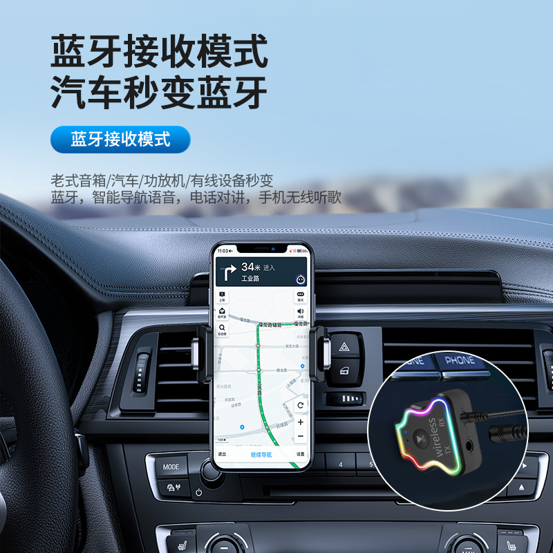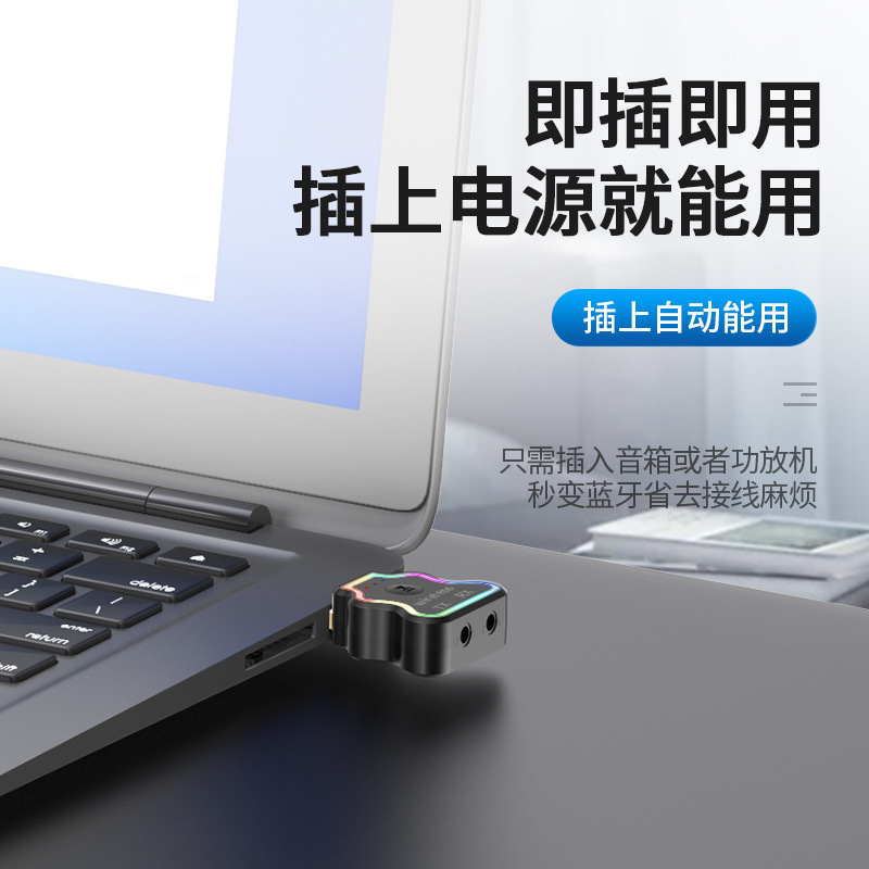 专利私模,外观新颖,不侵权。蓝牙接收器发射器多合一功能,带绚彩灯,新款上市。欢迎各平台电商客户开发。