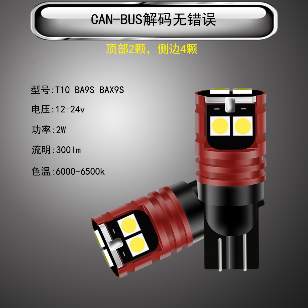 Высокояркий светодиодный индикатор T10, 6 SMD, белый свет, подсветка номерного знака, широкий диапазон напряжения 12-30В, бесступенчатое декодирование, автомобильный светильник, белый свет, высокая яркость