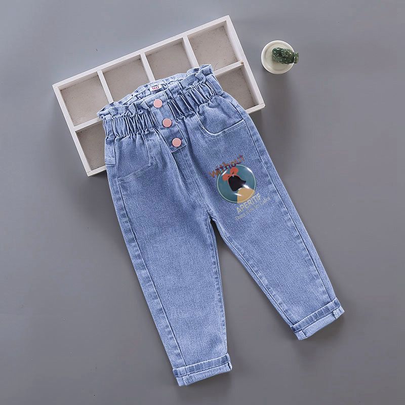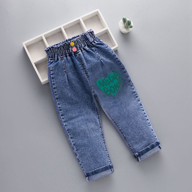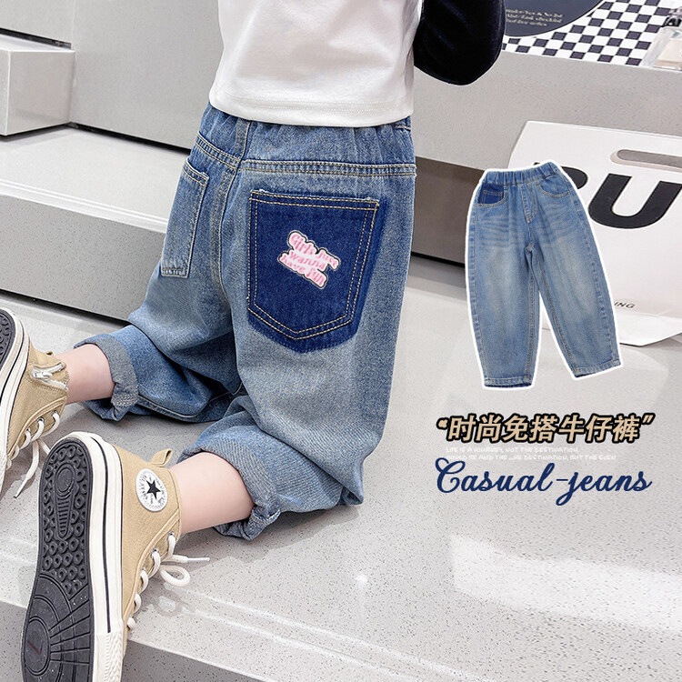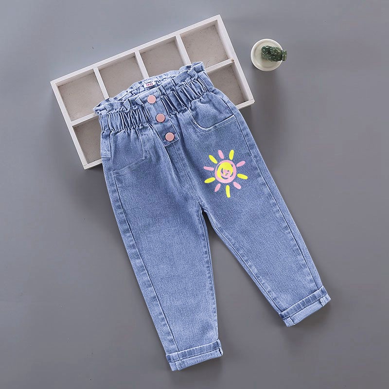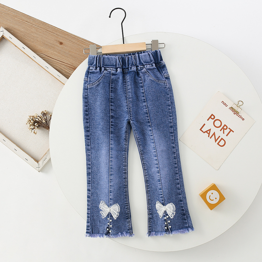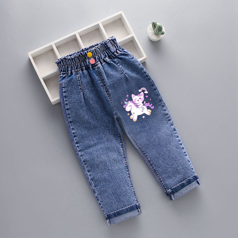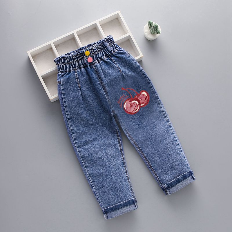 2024 весна и осень новый стиль детские джинсовые брюки для маленьких девочек с эластичным принтом