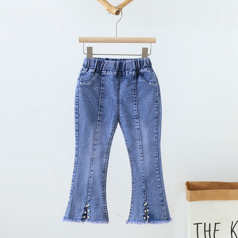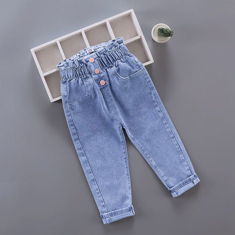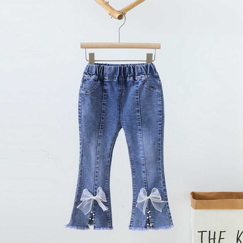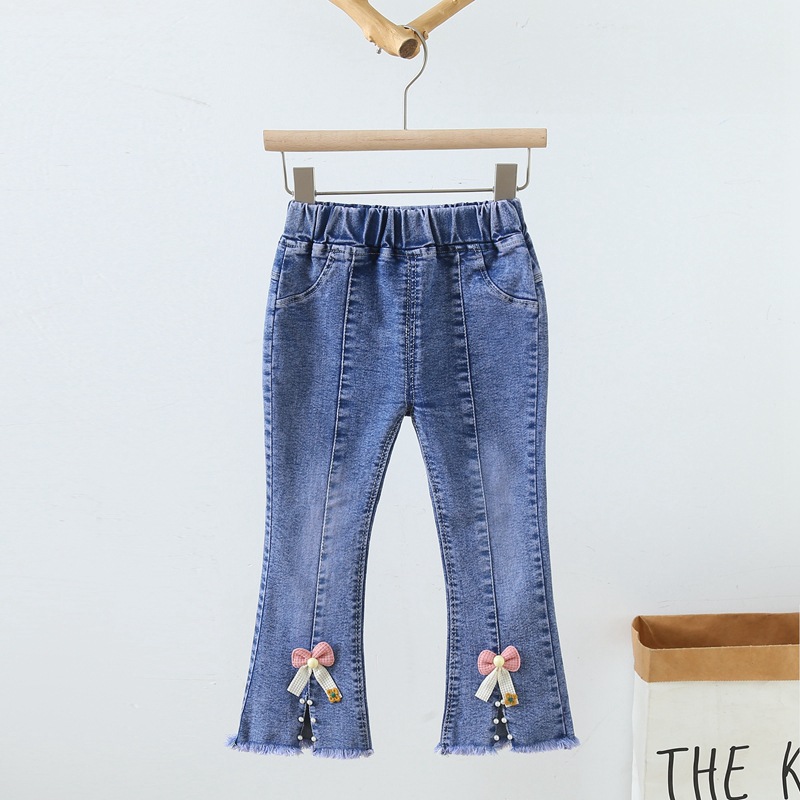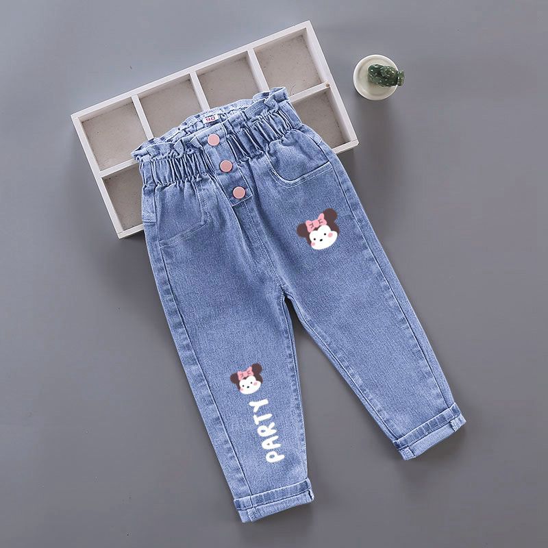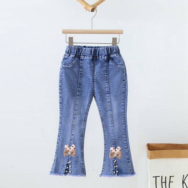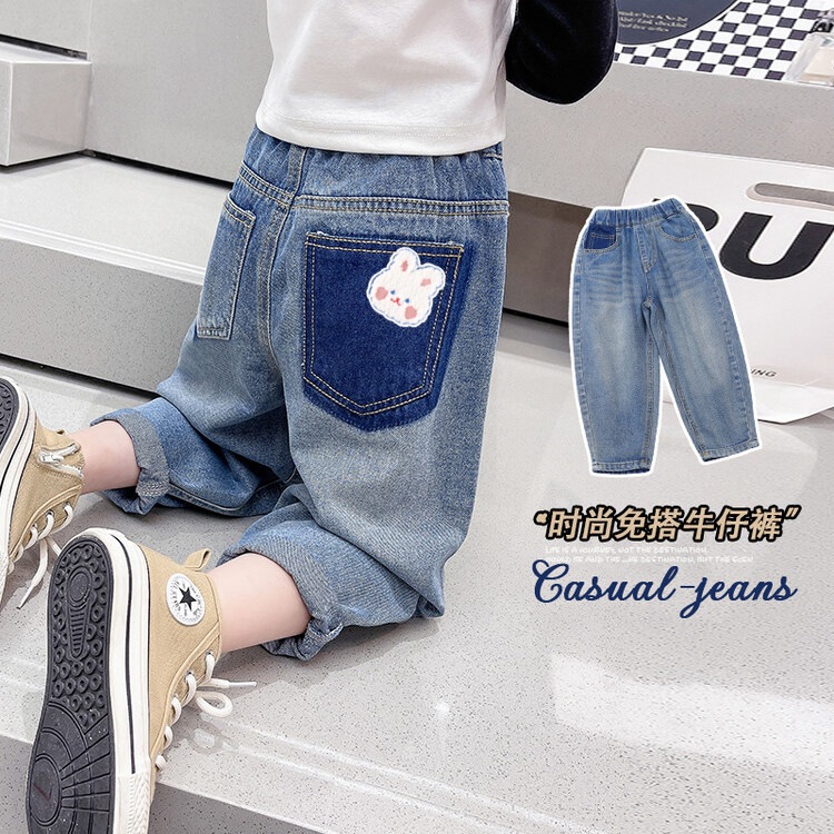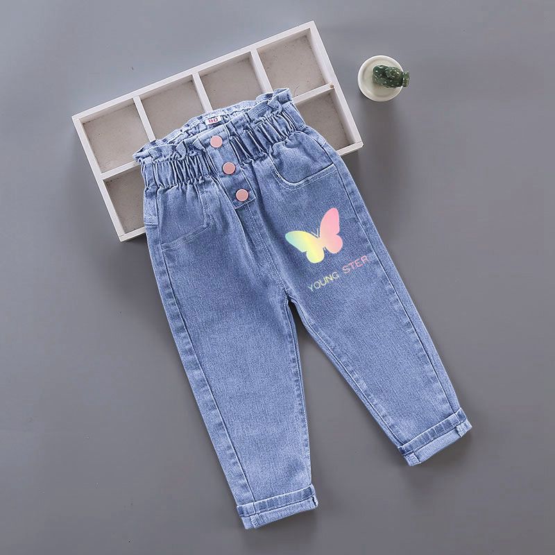 2024 весна и осень новый стиль детские джинсовые брюки для маленьких девочек с эластичным принтом
